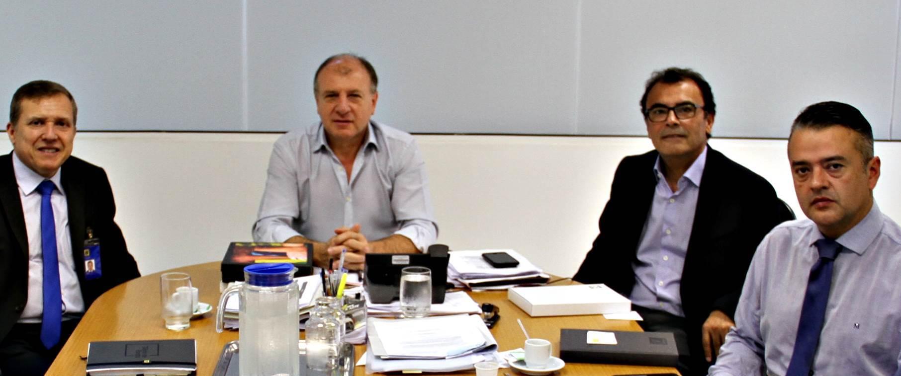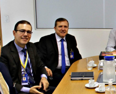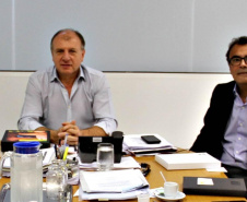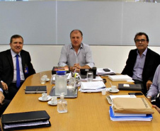 Gerentes do Banco do Brasil, do setor de Relações Institucionais com o Governo do Paraná, visitaram na manhã desta quinta-feira, 17, o secretario de Estado do Desenvolvimento Urbano (SEDU), João Carlos Ortega, para apresentações e uma conversa preliminar sobre a possibilidade de abertura de novas linhas de créditos para Projetos às Prefeituras do Paraná. “Este foi um encontro de apresentações e de conversas preliminares. Mas, no futuro teremos novas reuniões para delinearmos as prioridades dos municípios e as possibilidades de investimentos que possam dar maior e melhor apoio ao desenvolvimento da população em todas as Regiões do Estado”, adiantou Ortega.