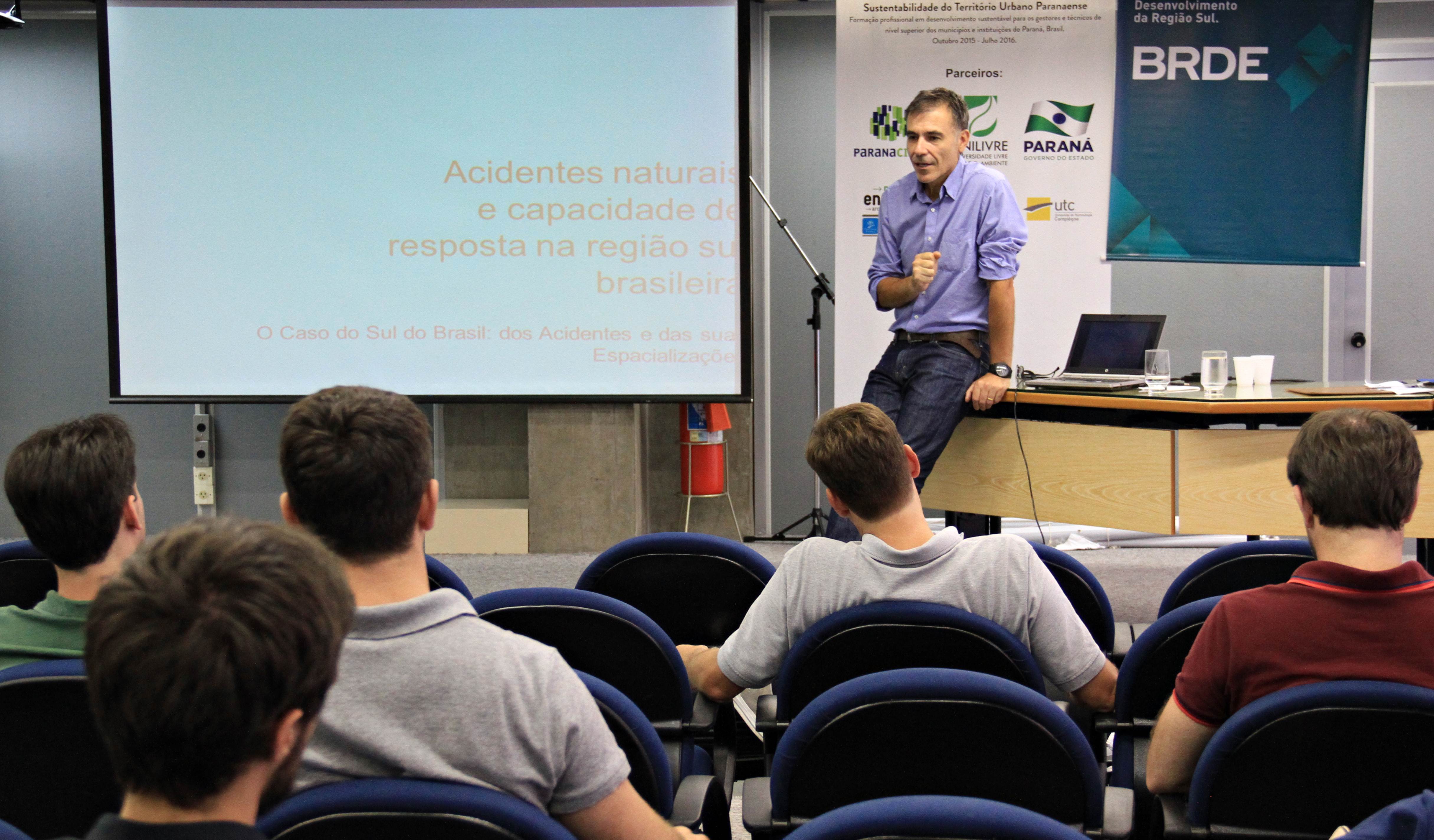 O curso, promovido pelo Serviço Social Autônomo – Paranacidade -, em parceria com a Secretaria do Desenvolvimento Urbano (SEDU), com a Universidade Livre do Meio Ambiente – UNILIVRE -, com a Universidade de Tecnologia de Compiège – UTC e a L’Alliance -, formada pelas Escolas de Engenharia, Administração e Arquitetura de Nantes – França -, mais Fomento Paraná, Banco Regional de Desenvolvimento do Extremo Sul (BRDE) e Caixa Econômica Federal, teve início em outubro de 2015 e prossegue neste ano.
