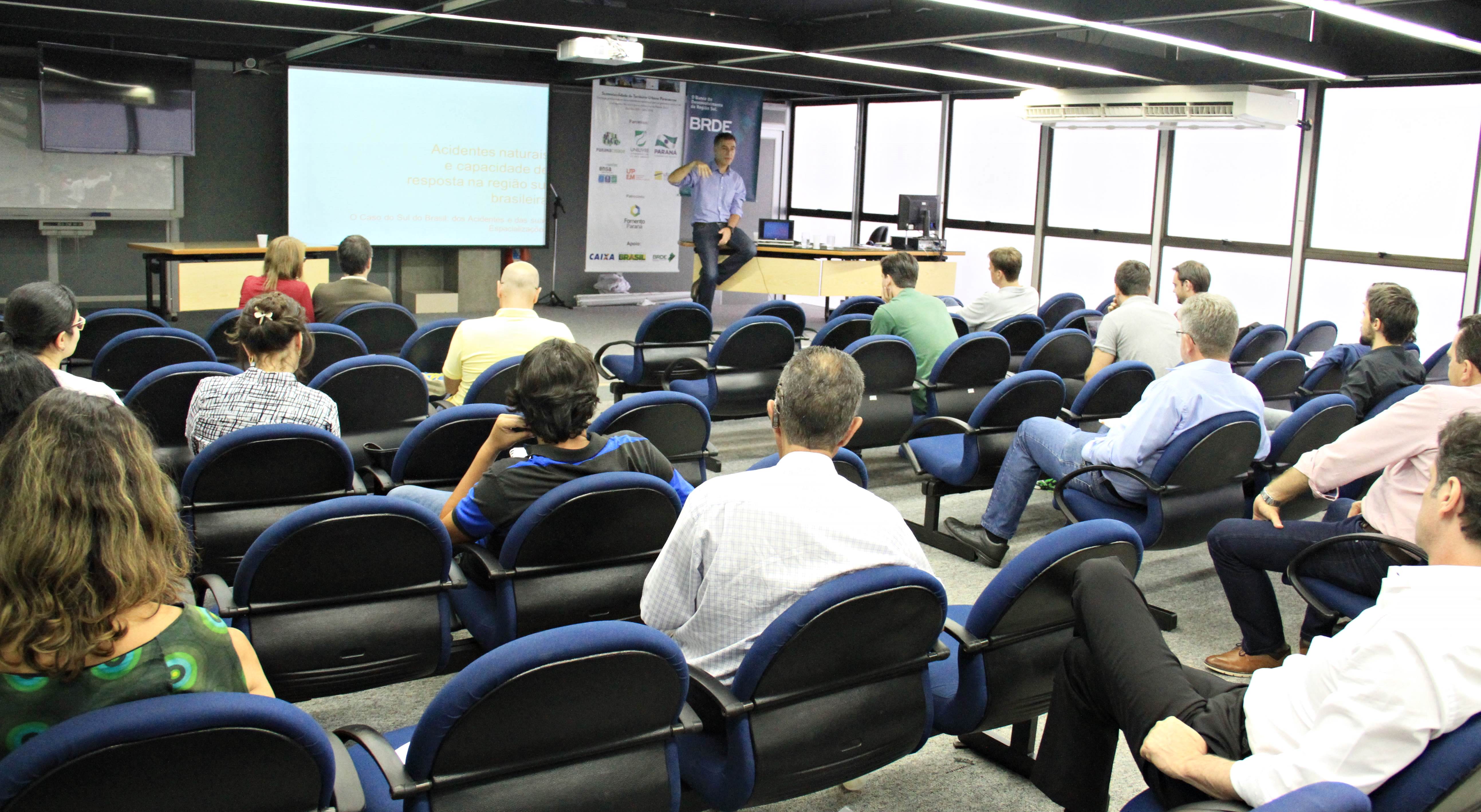 A formação profissional de gestores e técnicos de nível superior dos municípios do Paraná, e de instituições dedicadas ao desenvolvimento sustentável das cidades é o ponto central do “Curso de Pós-Graduação Franco-Brasileiro em Sustentabilidade do Território Urbano Paranaense” que acontece nesta semana no auditório da Secretaria do Desenvolvimento Urbano e do Serviço Social Autônomo (SEDU/Paranacidade). O Ateliê-projeto é sobre “Gestão de Riscos Urbanos” o que levanta questionamentos, investigações e dúvidas, sobre o foco principal, entre os profissionais que dele participam. Nesta manhã, eles se reuniram em grupos para tentarem limitar o tema do case escolhido como laboratório de estudo: a Vila Margarida, no bairro Afonso Pena, em São José dos Pinhais, que tem diversos problemas com enchentes e, ainda, ocorre em um espaço de segurança nacional.