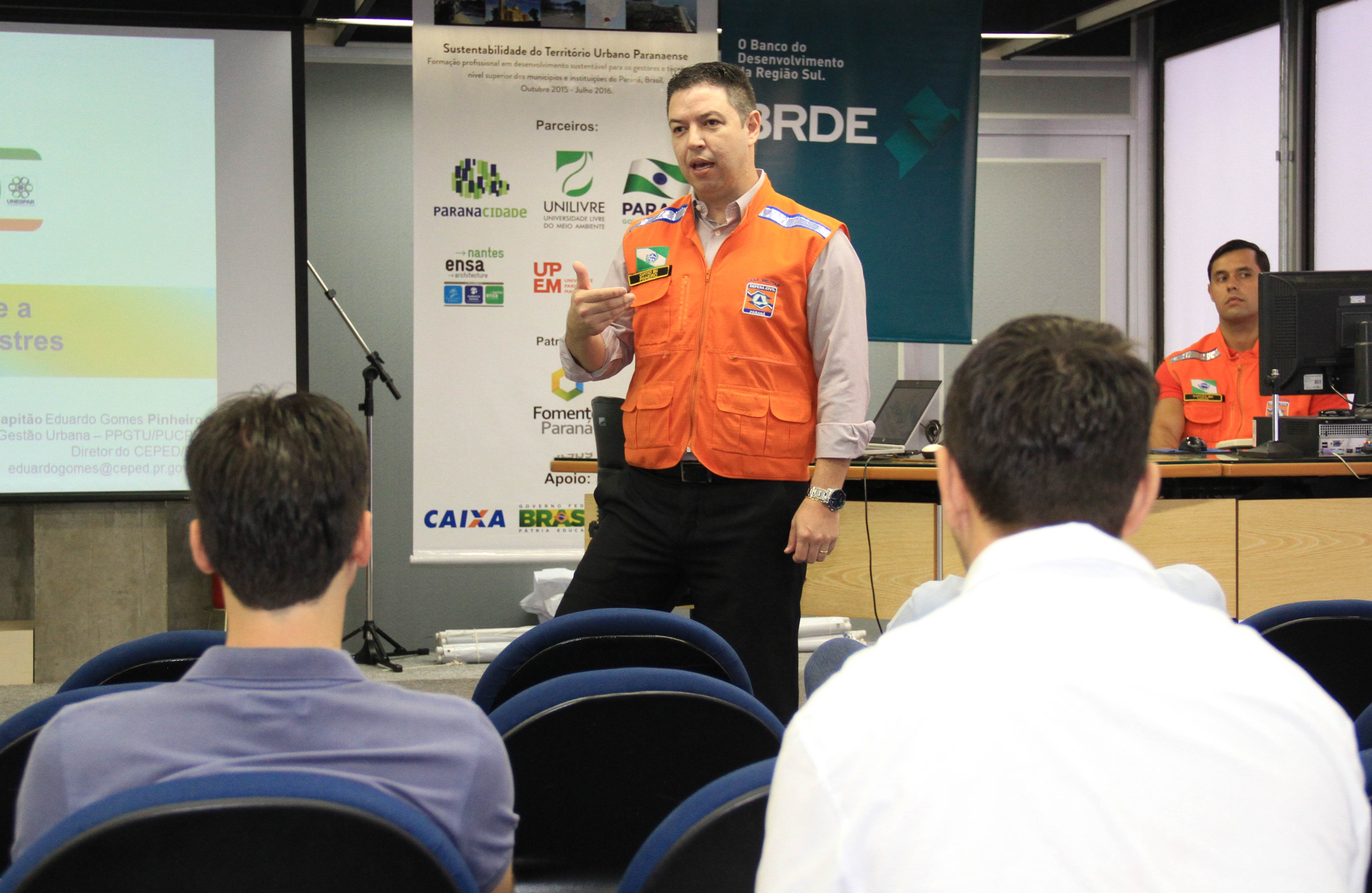 Chega ao fim o terceiro módulo do “Curso de Pós-Graduação Franco-Brasileiro em Sustentabilidade do Território Urbano Paranaense” que aconteceu nesta semana, no auditório da Secretaria do Desenvolvimento Urbano e do Serviço Social Autônomo (SEDU/Paranacidade), em Curitiba. A segunda semana do módulo vai acontecer entre os próximos dias 14 e 18 de março. O Ateliê-projeto é sobre "Gestão de Riscos Urbanos", e tem como tema o case da Vila Margarida, no bairro Afonso Pena, em São José dos Pinhais, que tem problema de inundação. Nesta semana, a programação privilegiou palestras com especialistas em gestão de riscos, mesas redondas,, além de reunião com representantes da Infraero e visita ao local de estudo.