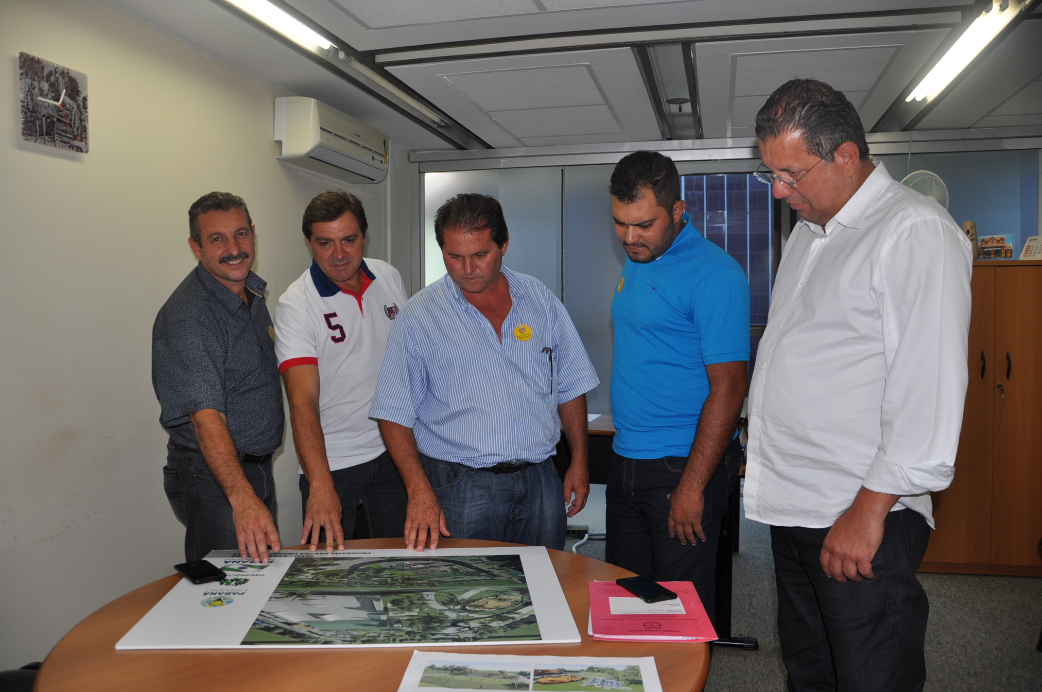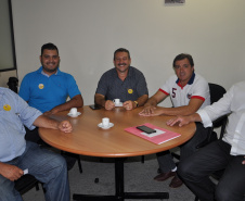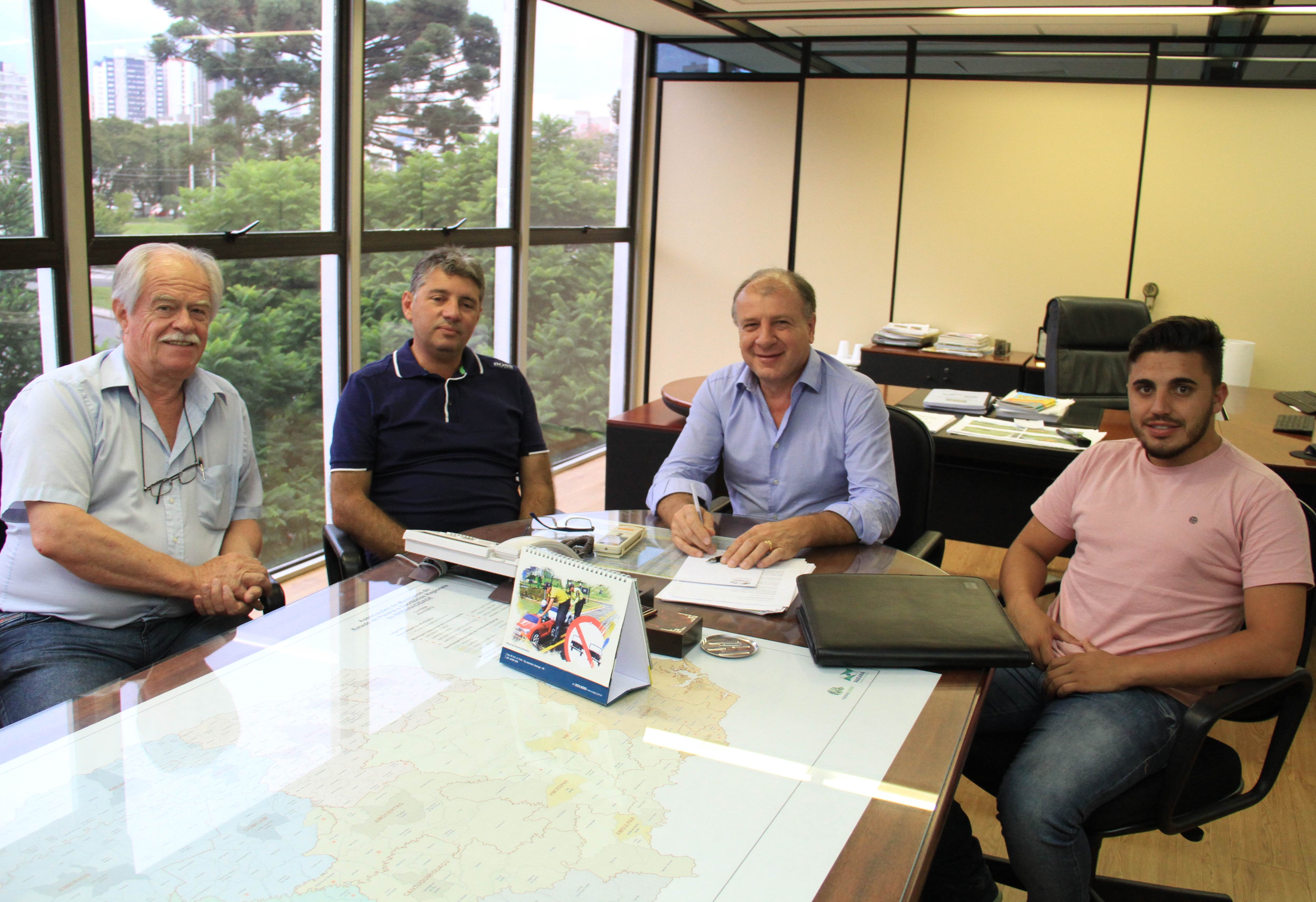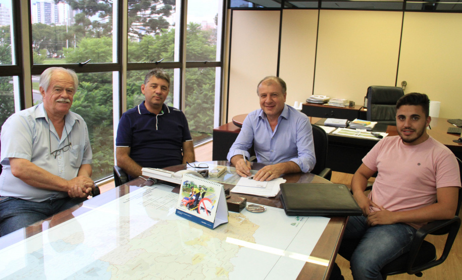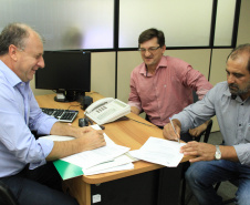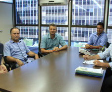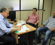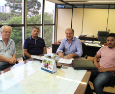 Vereadores de Astorga, Claudinei Oliani, o Pastor Nei, e Maurício Ricardo Juliani, mais o vereador de Santa Mariana, Guto Barros, acompanhados do chefe de gabinete do deputado estadual Cobra Repórter, Ademar Ramos, conversaram com o assessor especial Lúcio Tasso, sobre a possibilidade de construção de casas geminadas e, ainda, para conhecer melhor o Programa “Meu Campinho”.