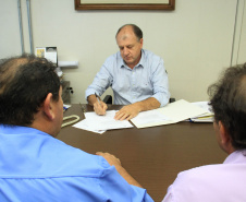 O prefeito de Campo Bonito, Antonio Carlos Dominiak, também esteve na SEDU para assinar edital de licitação destinado à compra de um rolo compactador, no valor de R$ 347.500,00, pelo SFM. “Arrumar e manter nossas estradas vicinais é uma das minhas prioridades. Além, claro, da saúde e educação”, diz Dominiak.