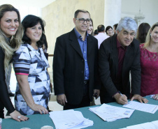 O governador Beto Richa, junto com secretários de Estado, entre eles o do Desenvolvimento Urbano (SEDU), João Carlos Ortega, convidou os prefeitos dos municípios do Paraná a aderirem ao Termo de Adesão aos Objetivos de Desenvolvimento Sustentável (ODS), contidos na Agenda 2030 da ONU. O convite foi feito durante evento de assinatura de convênios que aconteceu nesta semana no Palácio Iguaçu.