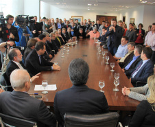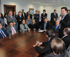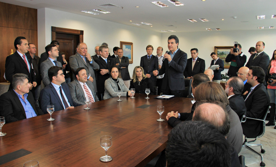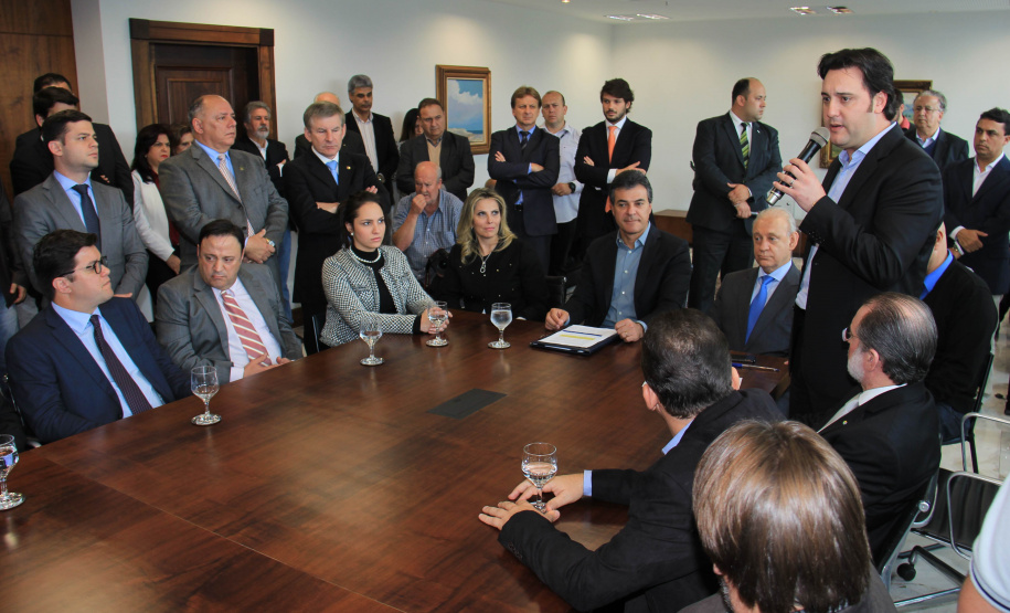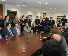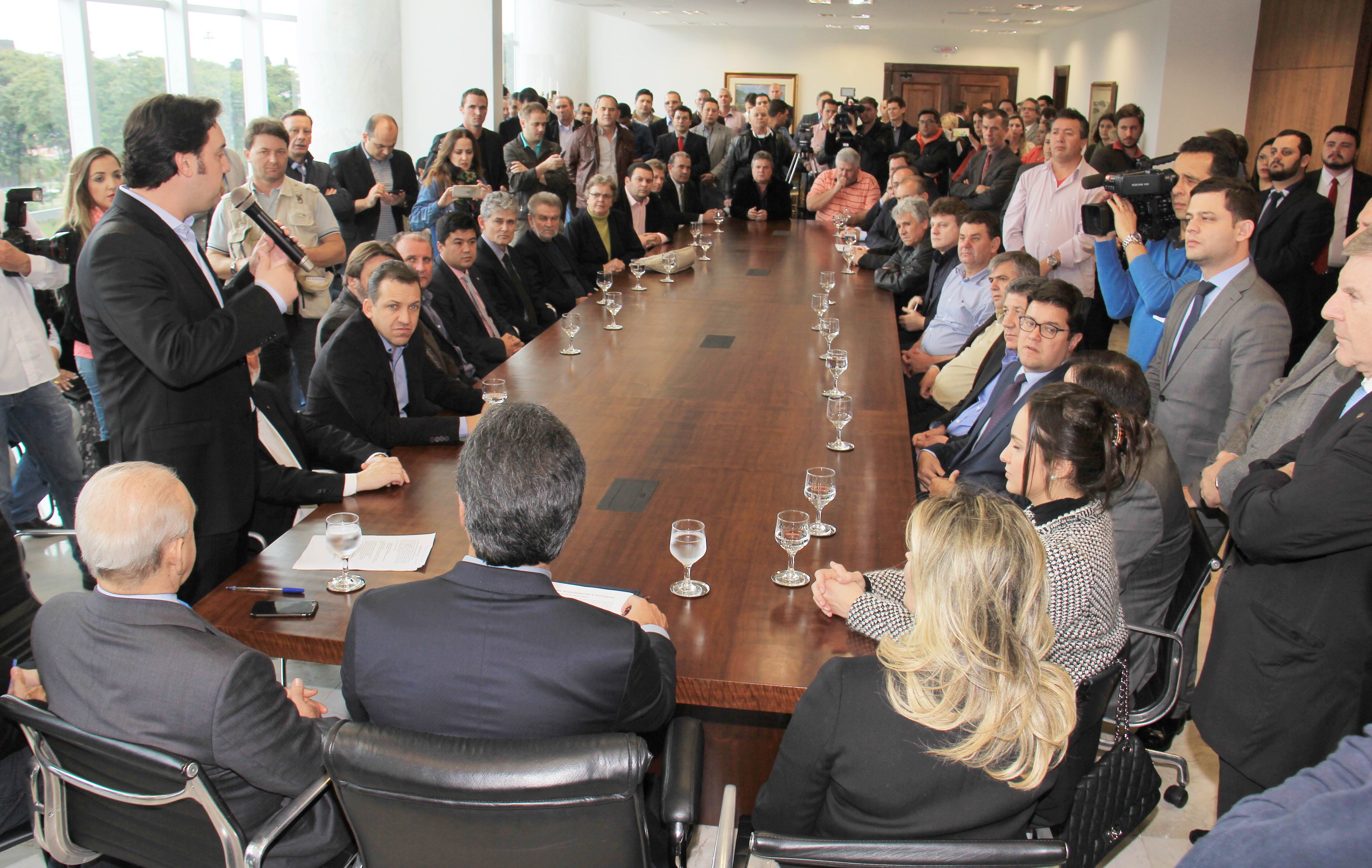 PRESENÇAS – Participaram da solenidade o secretário-chefe da Casa Civil, Eduardo Sciarra; o presidente da Assembleia Legislativa do Paraná, Ademar Traiano; e os deputados estaduais Luiz Cláudio Romanelli, Tião Medeiros, Maria Victória Barros, Artagão Junior, Élio Rusch, Alexandre Curi, Guto Silva, Tiago Amaral, Francisco Buhrer, Hussein Bakri, José Carlos Schiavinato e Wilmar Reichembach.