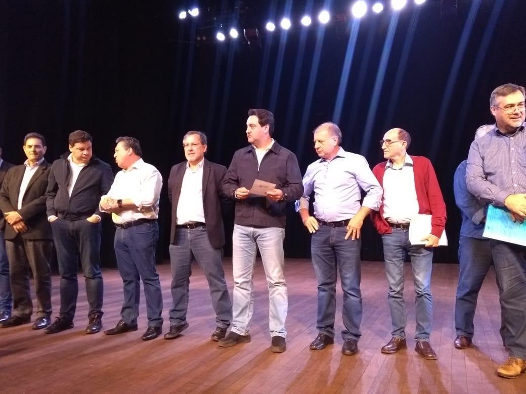 PRESENÇAS — Participaram da solenidade os secretários de Estado do Desenvolvimento Sustentável e Turismo, Marcio Nunes; e da Infraestrutura e Logística, Sandro Alex; o deputado estadual Jonas Guimarães, e prefeitos da Região.