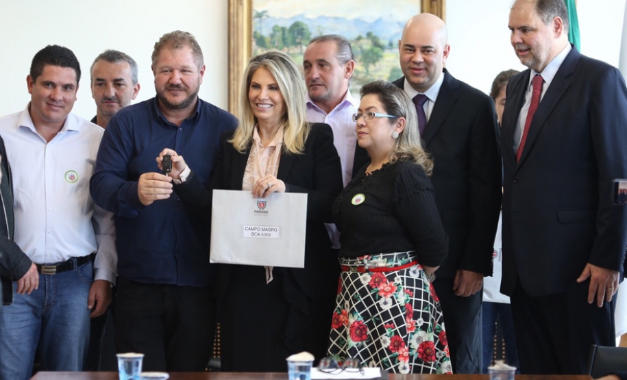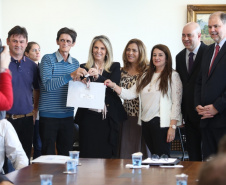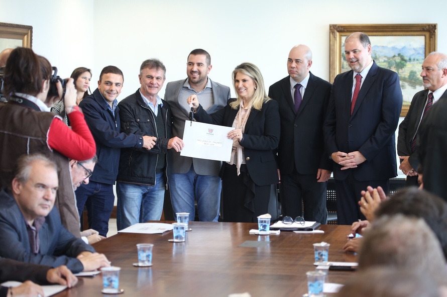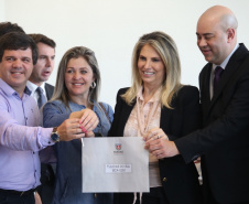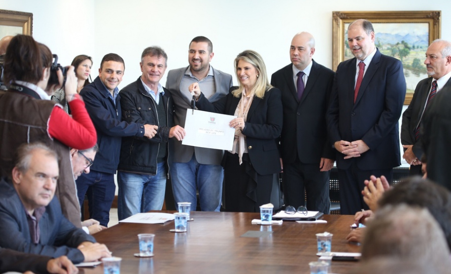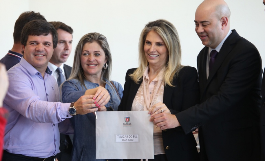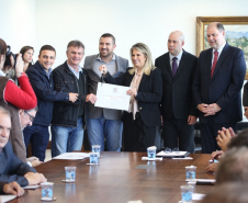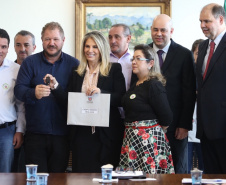 PRESENÇAS - Durante a assinatura também estiverem presentes o deputado federal Toninho Wandscheer, o secretário de Administração de Quedas do Iguaçu, Vitório Revers, e o prefeito de General Carneiro, Luiz Otávio Saraiva.