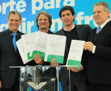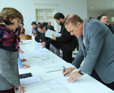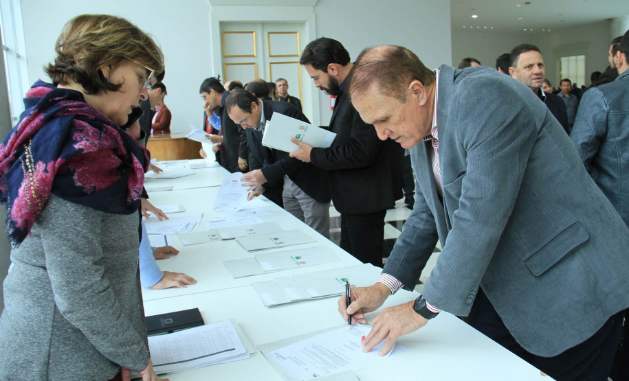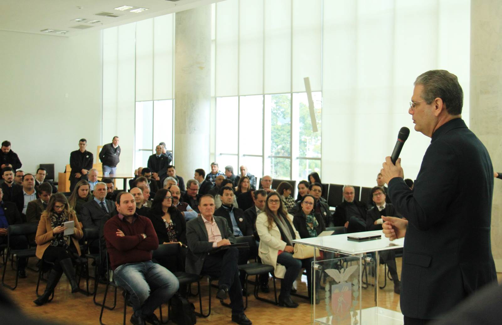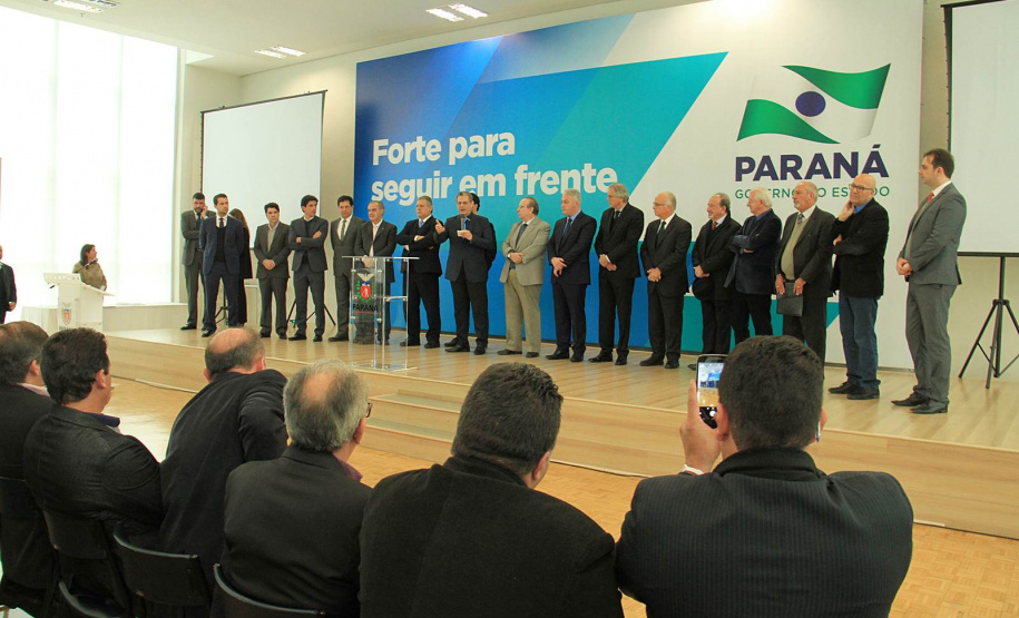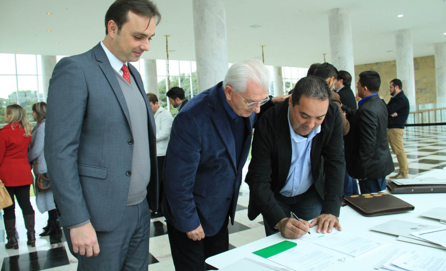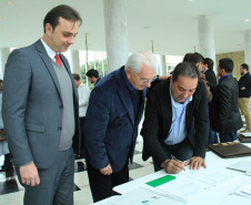 PRESENÇAS - Estavam também presentes no evento os deputados estaduais Pedro Lupion, líder do Governo na Assembleia Legislativa, Alexandre Curi, André Bueno, Artagão Junior, Bernardo Carli, Evandro Junior, Jonas Guimarães, Paulo Litro, Stephanes Junior, Tiago Amaral, Douglas Fabrício, Nelson Justus e Luiz Cláudio Romanelli.