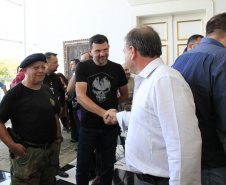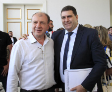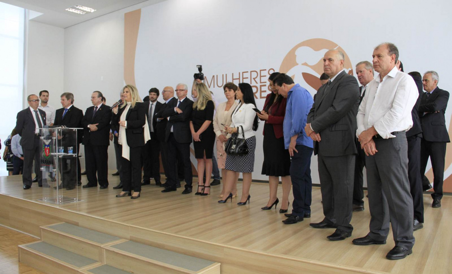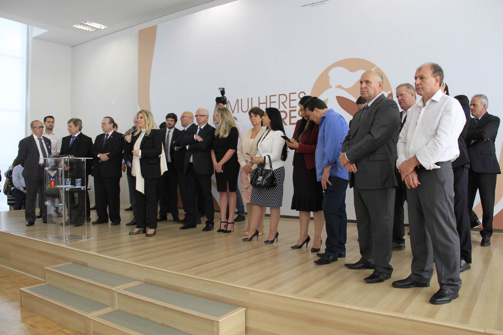 PRESENÇAS – Participaram também da solenidade o presidente da Assembleia Legislativa do Paraná, Ademar Traiano; os secretários de Estado de Cultura, João Luiz Fiani, e do Cerimonial e Relações Internacionais, Ezequias Moreira; os deputados estaduais Luiz Claudio Romanelli, Ademir Bier, Alexandre Guimarães, Cristina Silvestre, Elio Rusch, Evandro Araújo, Francisco Bührer, Jonas Guimarães, Marcio Nunes, Marcio Pauliki, Maria Victoria, Edson Praczyk, Paulo Litro, Pedro Lupion, Rubens Recalcatti, Tiago Amaral, Tião Medeiros e Wilmar Reichenbach.