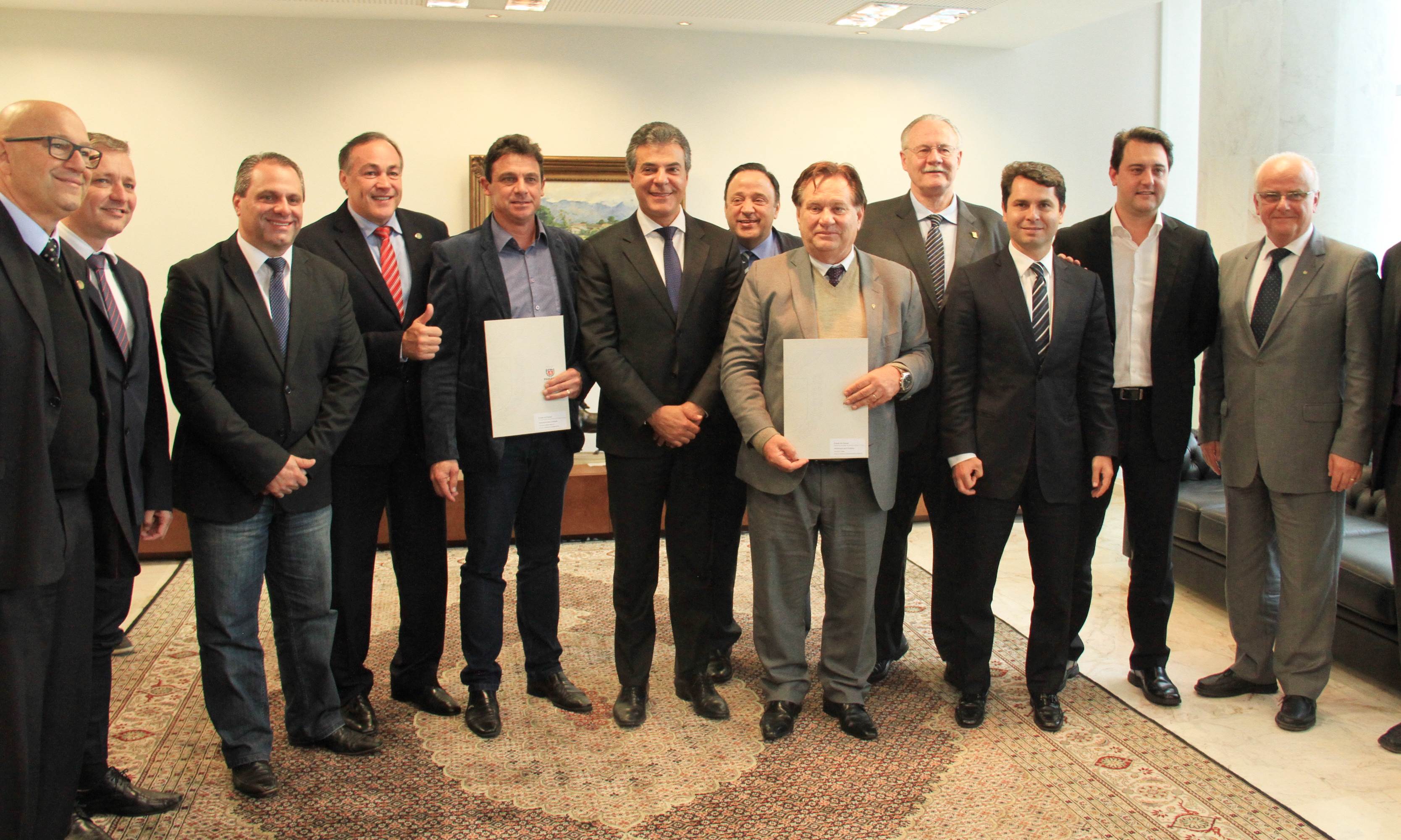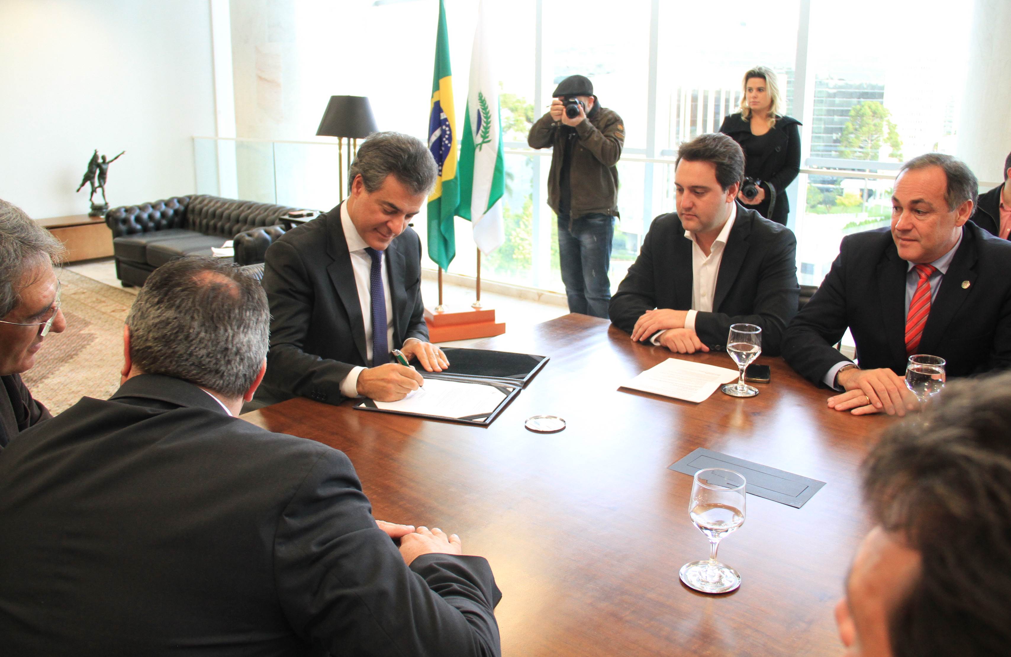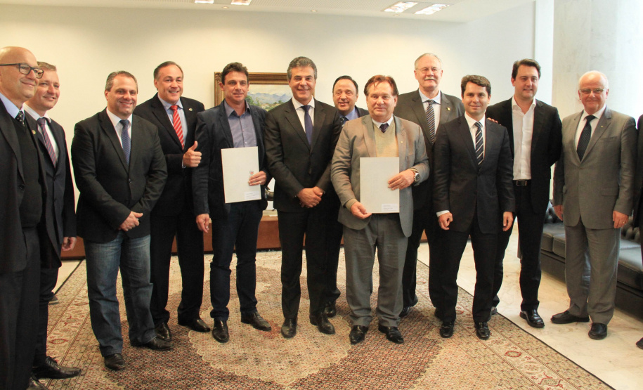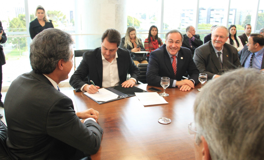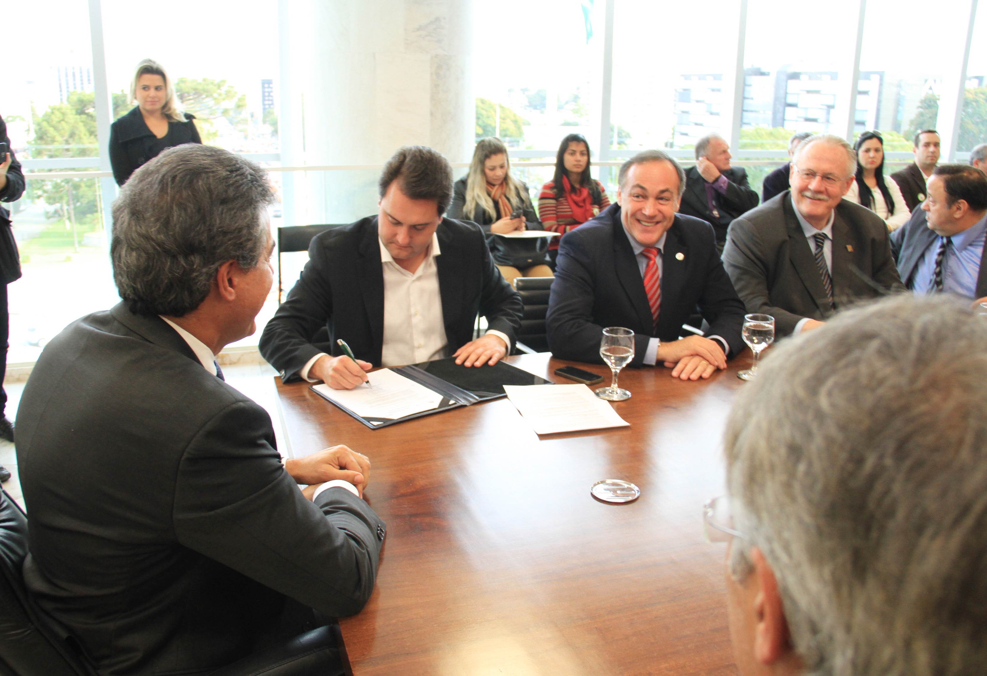 O governador Beto Richa assinou nesta terça-feira, 23, licitação para obras de pavimentação nos municípios de Almirante Tamandaré, Lapa e Quatro Barras, na Região Metropolitana de Curitiba (RMC). São recursos em um total de mais de R$ 7,9 milhões, oriundos do Programa de Sistema de Financiamento aos Municípios (SFM), da Secretaria de Desenvolvimento Urbano (SEDU. O secretário da Pasta, Ratinho Junior, também firmou o documento. Parte deste total de recursos é gerido pela Fomento Paraná e outra pelo Banco Regional de Desenvolvimento do Extremo Sul (BRDE). “Mais uma vez estamos demonstrando na prática o compromisso do Governo do Estado com os municípios. Entendemos que é neles que as pessoas vivem e, por isso, é onde precisamos fazer investimentos para garantir cada vez mais qualidade de vida ao nosso povo”, disse o governador Beto Richa.