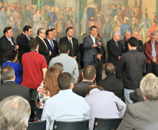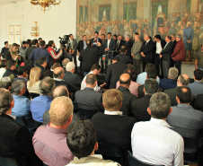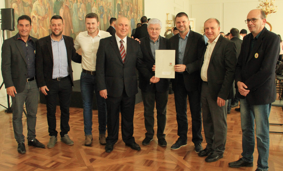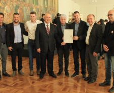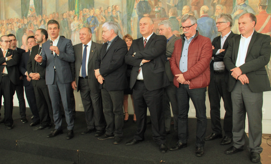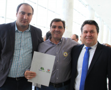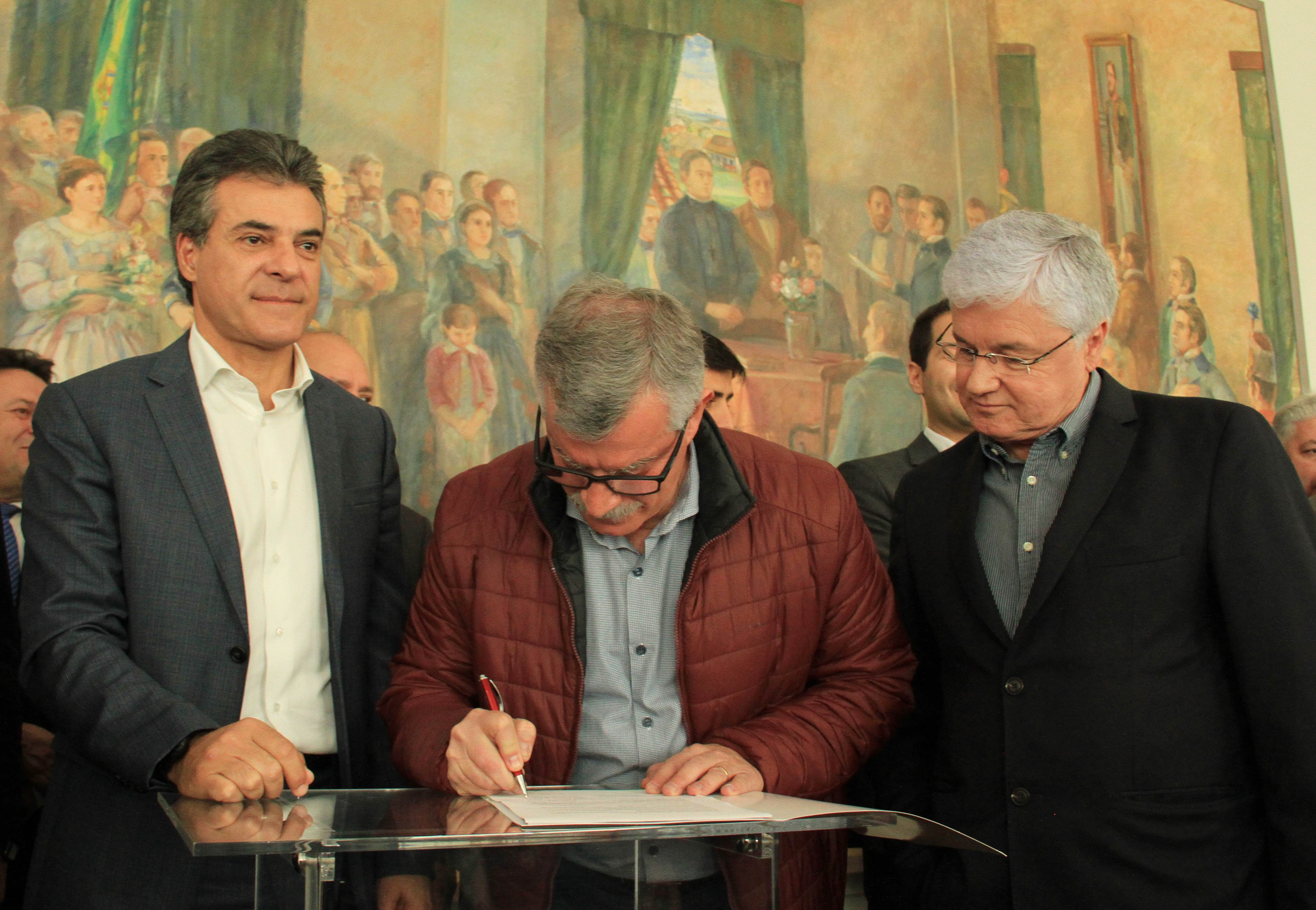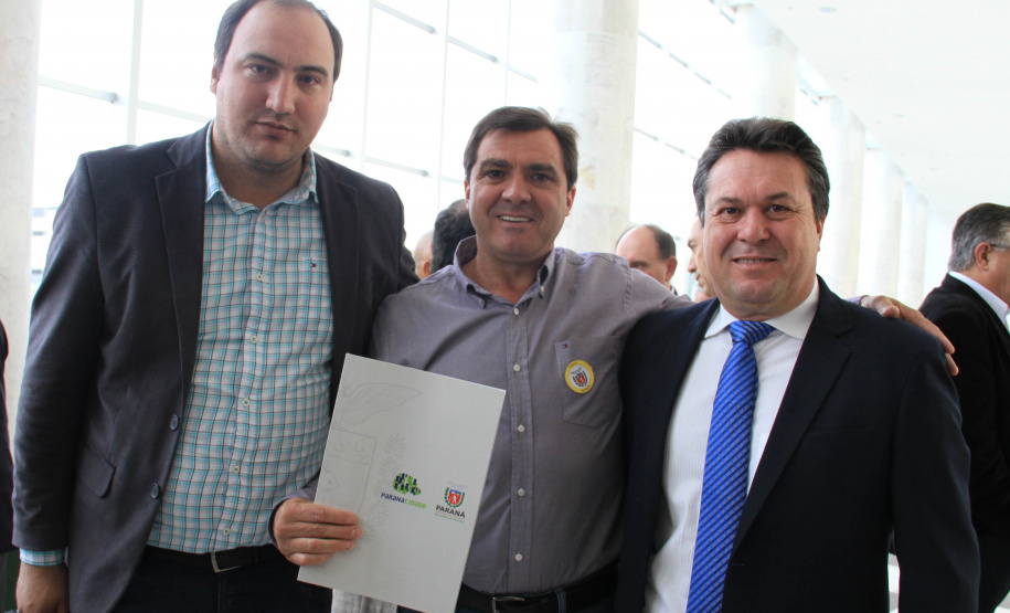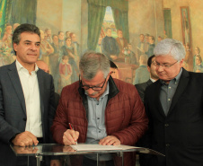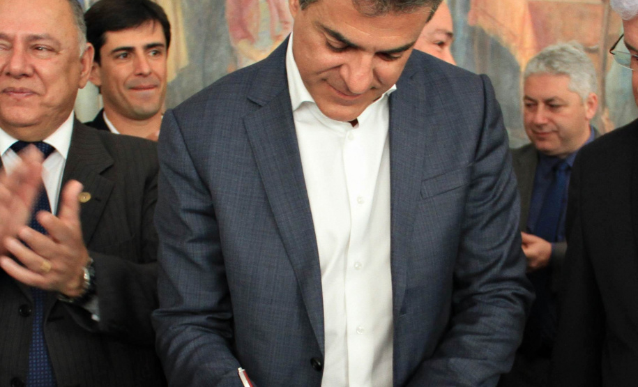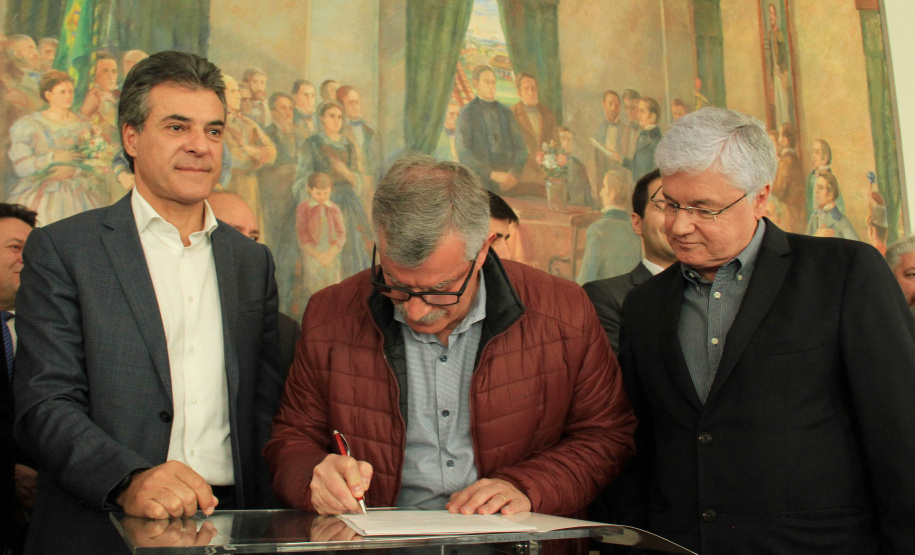 PRESENÇAS - Acompanharam as assinaturas os secretários de estado da Agricultura e Abastecimento, Norberto Anacleto Ortigara; do Esporte e Turismo, Douglas Fabricio; o diretor da Secretaria de Estado do Desenvolvimento Urbano, João Carlos Ortega; o presidente da Assembleia Legislativa. Ademar Traiano e os deputados estaduais Alexandre Curi, Alexandre Guimarães, Andre Bueno, Francisco Bührer, Guto Silva, Hussein Bakri, Jonas Guimarães, Luiz Carlos Martins, Marcio Nunes, Marcio Pauliki, Paulo Litro, Schiavinato, Stephanes Junior e Wilmar Reichembach.