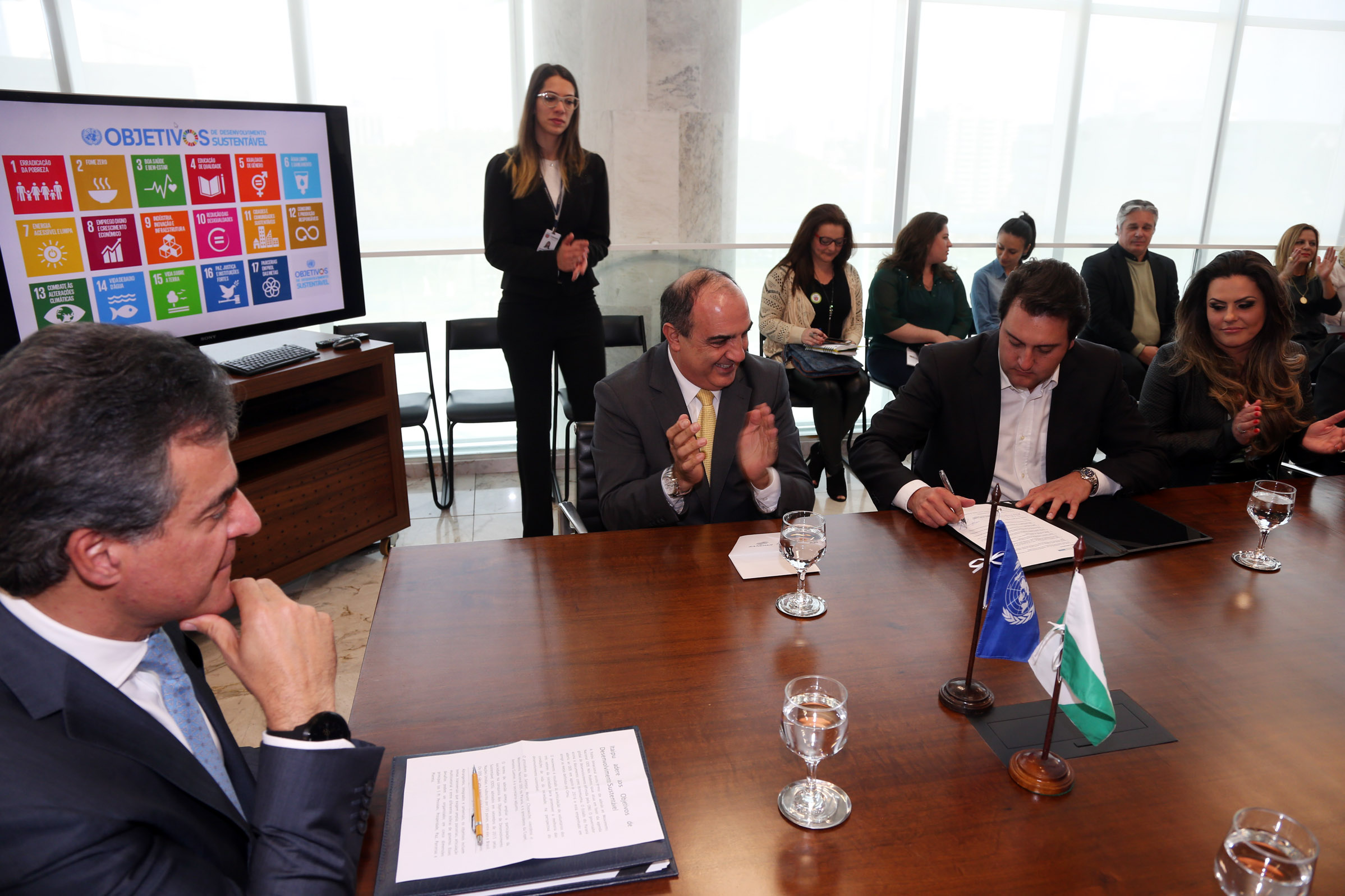 Já estão comprometidos com os ODS líderes mundiais de 193 Estados Membros da ONU, que participaram da Cúpula das Nações Unidas sobre Desenvolvimento Sustentável, em setembro de 2015. Assim, quando assinou o mesmo compromisso, no início deste mês de agosto, pela Secretaria do Desenvolvimento Urbano e Serviço Social Autônomo (SEDU / Paranacidade), o secretário da Pasta, Carlos Massa Ratinho Junior disse: “com este documento, nós todos, nossa equipe de profissionais, assumimos o compromisso de buscar efetivar os 17 objetivos, os princípios e as metas para chegar ao desenvolvimento sustentável e para atender as necessidades da atual e das futuras gerações. Vamos deixar nossas digitais na construção deste sonho”.