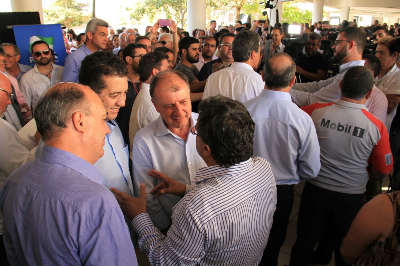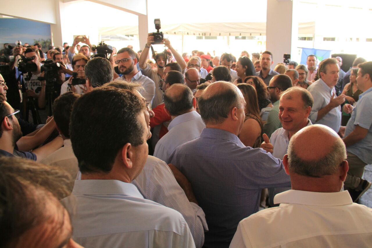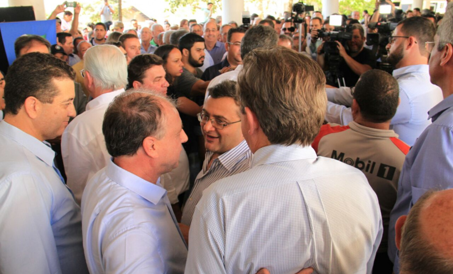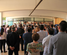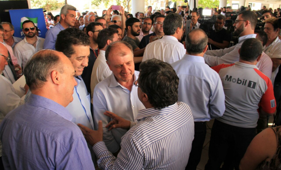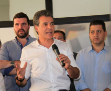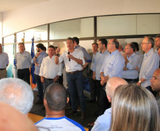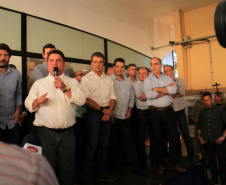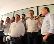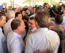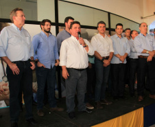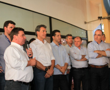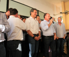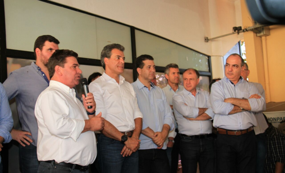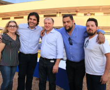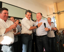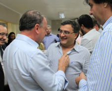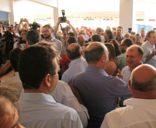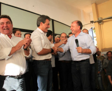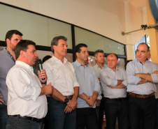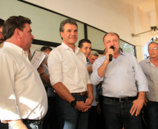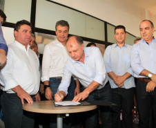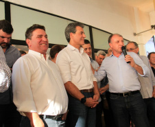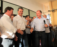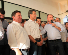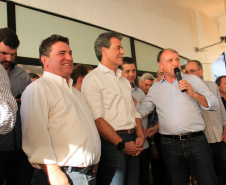 PRESENÇAS - Participaram da solenidade os secretários de Estado de Infraestrutura e Logística, José Richa Filho, e do Desenvolvimento Urbano, João Carlos Ortega; o presidente da Sanepar, Mounir Chaowiche; o presidente da Cohapar, Abelardo Lupion; o presidente do Instituto das Águas do Paraná, Iran de Rezende; os deputados estaduais Pedro Lupion, Cobra Repórter e Tiago Amaral e o deputado federal Luciano Ducci.