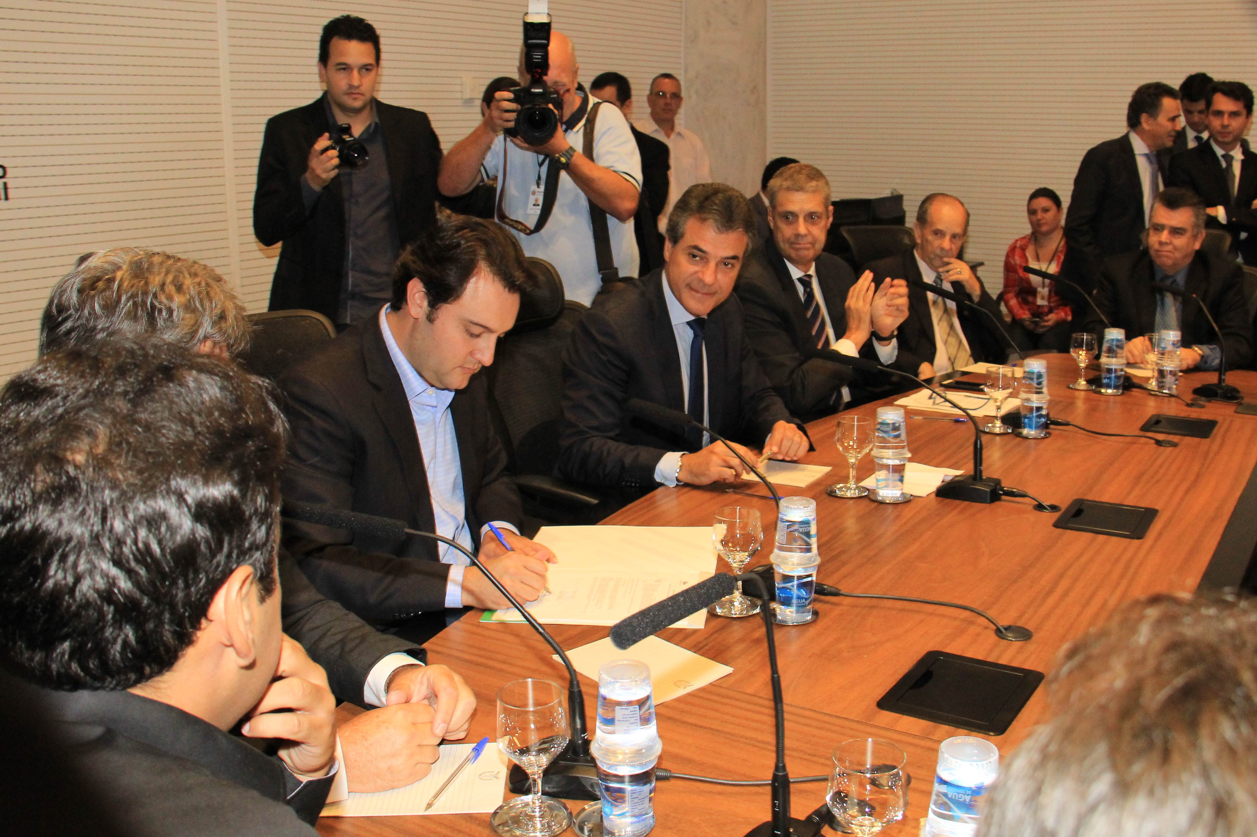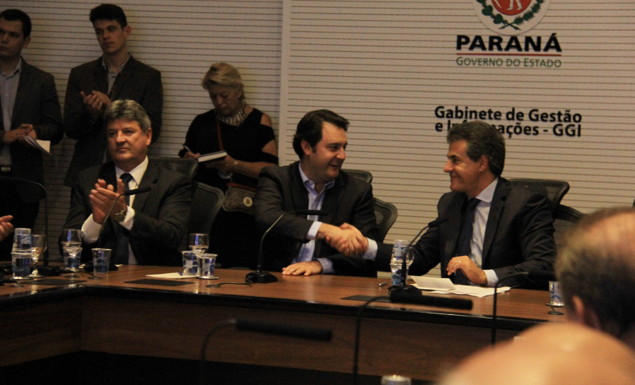 A cidade de Curitiba recebeu na tarde desta terça-feira, 22, mais dois benefícios à população. O governador Beto Richa, o secretário do Desenvolvimento Urbano (SEDU), Ratinho Junior, e o presidente da Copel, Luiz Fernando Vianna, assinaram autorização de investimentos de mais de R$ 164 milhões para obras em Curitiba. Os documentos foram também assinados pelo secretário de Obras Públicas de Curitiba, Sérgio Luiz Antoniasse, que representou o prefeito Gustavo Fruet. Os recursos vão permitir retirar 25 torres e 20 superpostes, da Avenida Comendador Franco – Avenida das Torres - que liga Curitiba a São José dos Pinhais e ao aeroporto Afonso Pena, implantando uma nova linha de energia subterrânea. E, ainda, firmar contrato para obras de pavimentação na Avenida Agamenon Magalhães, no bairro Capão da Imbuia. “Com esta nova ação da Copel, vamos avançar ainda mais nos estudos de mobilidade urbana da Coordenação da Região Metropolitana (COMEC) e SEDU”, adiantou Ratinho Junior.