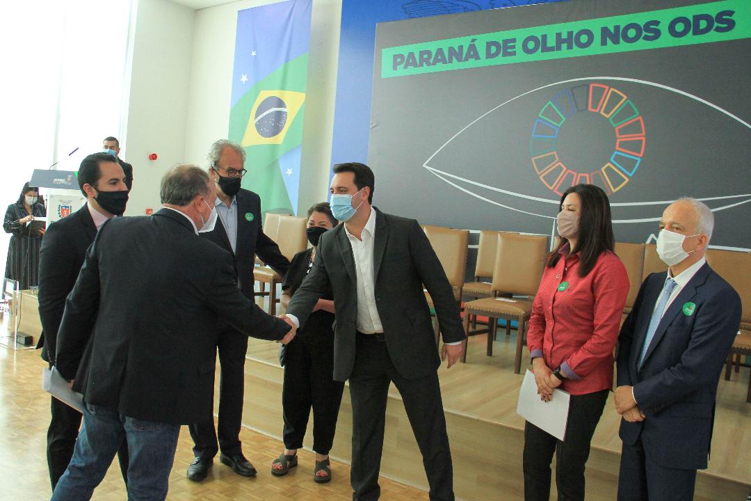 O governador Carlos Massa Ratinho Junior participou, na tarde desta terça-feira, 28, do evento Paraná de Olho nos ODSs, promovido pelo Conselho Estadual de Desenvolvimento Econômico Social (CEDES), ocasião em que foi apresentado o Portal Boas Práticas ODS, lançados o e-book Guia de Implantação de Campanha de Sensibilização sobre a Agenda 2030 e os ODSs e o Relatório Missão ODS, que apresenta os indicadores municipais e auxiliam os gestores públicos na identificação das prioridades locais. Ainda, foi assinado o Acordo de Cooperação para divulgar e estimular a observância aos ODSs nas 399 cidades paranaenses. “A qualidade de vida é buscada desde a gestação. A mãe se preocupa com a saúde do filho, em dar à luz em um bom Hospital, estudar em uma boa Escola. A busca pela qualidade de vida é a busca da felicidade”, afirmou Ratinho Junior.