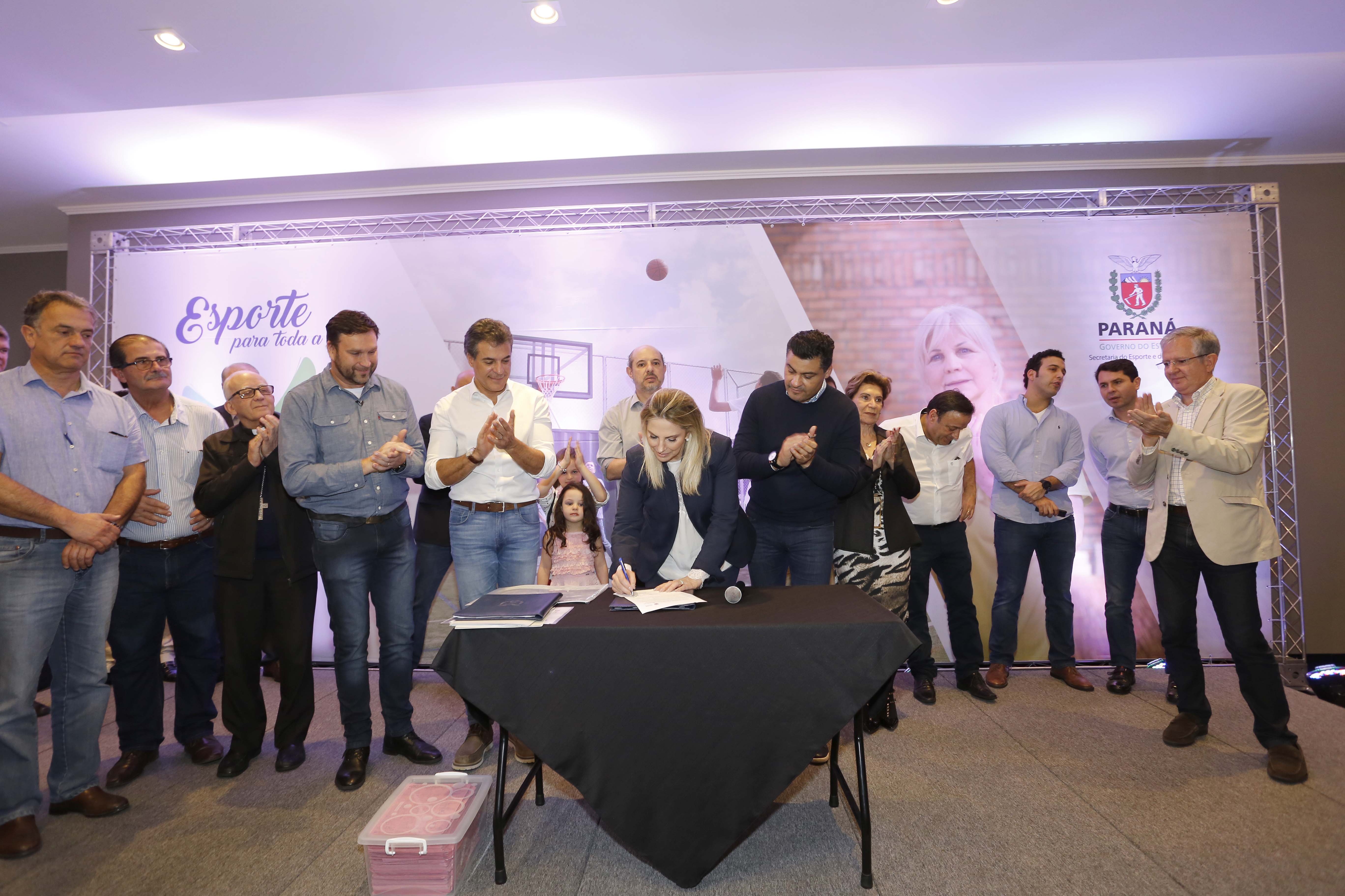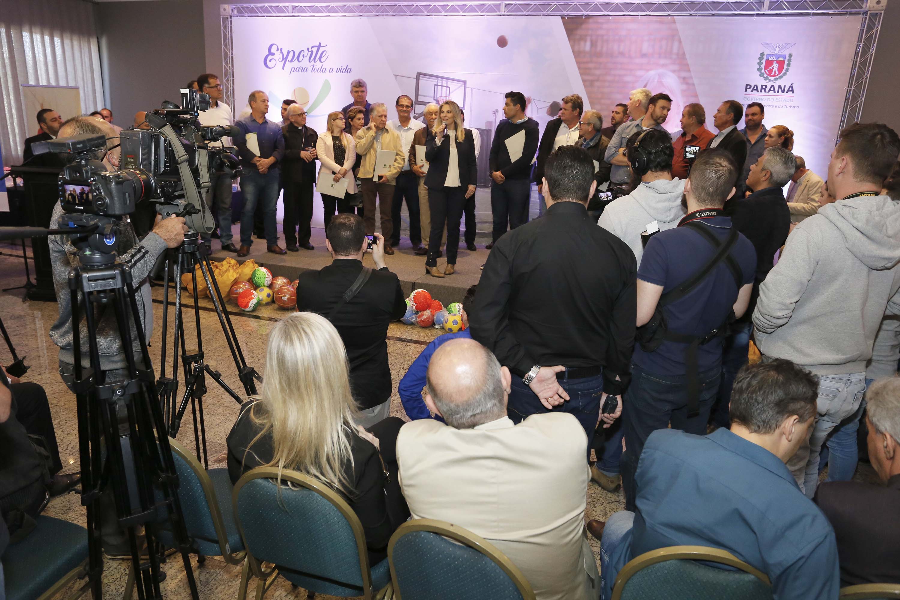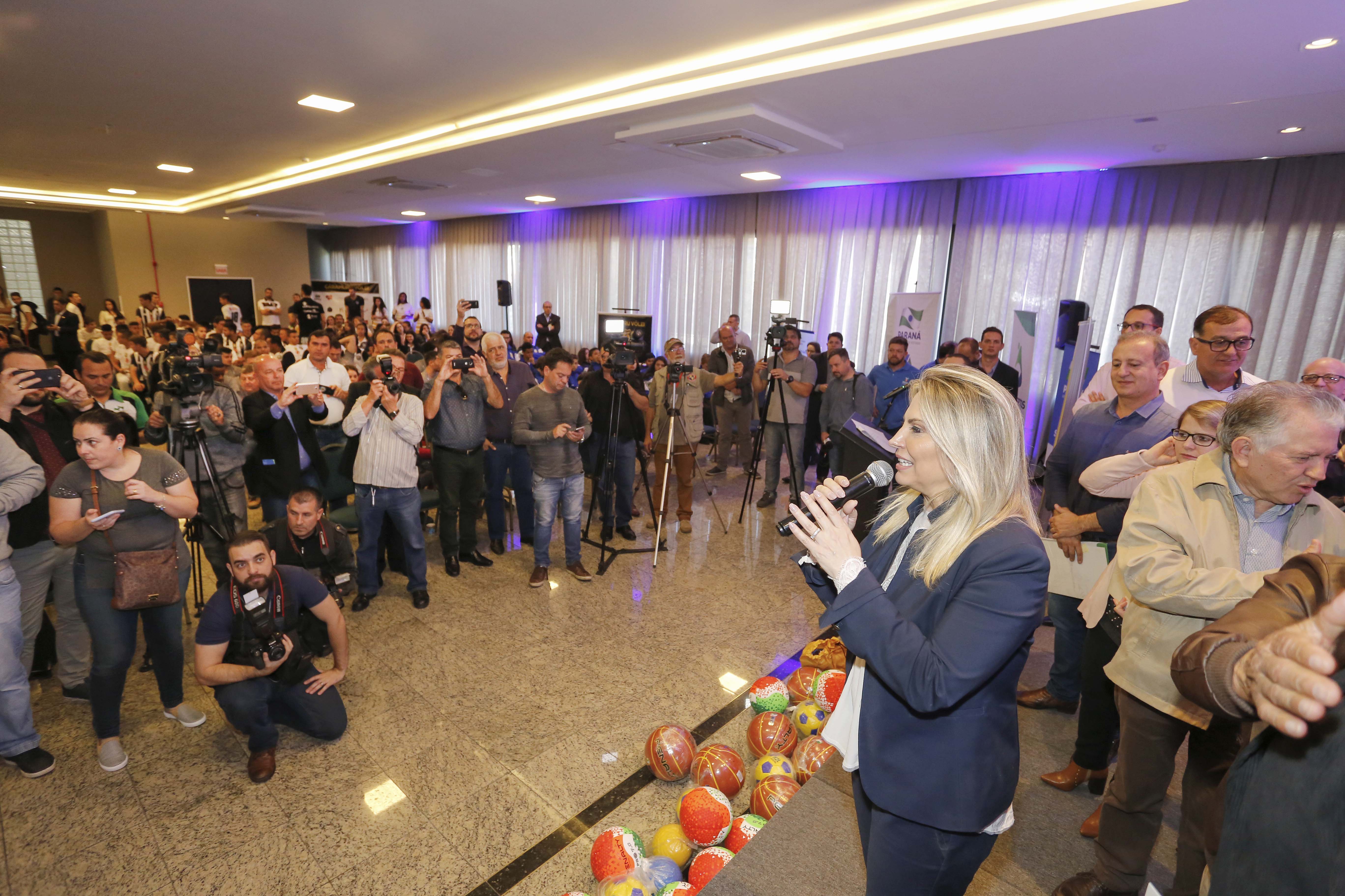 A governadora Cida Borghetti esteve em Ponta Grossa, nos Campos Gerais, onde firmou convênios para investimentos nos municípios da região. Também foram entregues conjuntos de materiais esportivos às prefeituras. Participaram do evento: prefeito de Ponta Grossa, Marcelo Rangel, secretário de Esporte e Turismo, João Carlos Barbiero, ex-governador Beto Richa, deputados; Alexandre Curi, Marcio Paulik, Plauto Miró, Artagão Junior, Bernardo Carli, Husein Bakri.Ponta Grossa, 05-07-18.Foto: Arnaldo Alves / ANPr.A governadora Cida Borghetti esteve em Ponta Grossa, nos Campos Gerais, onde firmou convênios para investimentos nos municípios da região. Também foram entregues conjuntos de materiais esportivos às prefeituras. Participaram do evento: prefeito de Ponta Grossa, Marcelo Rangel, secretário de Esporte e Turismo, João Carlos Barbiero, ex-governador Beto Richa, deputados; Alexandre Curi, Marcio Paulik, Plauto Miró, Artagão Junior, Bernardo Carli, Husein Bakri.Ponta Grossa, 05-07-18.Foto: Arnaldo Alves / ANPr.