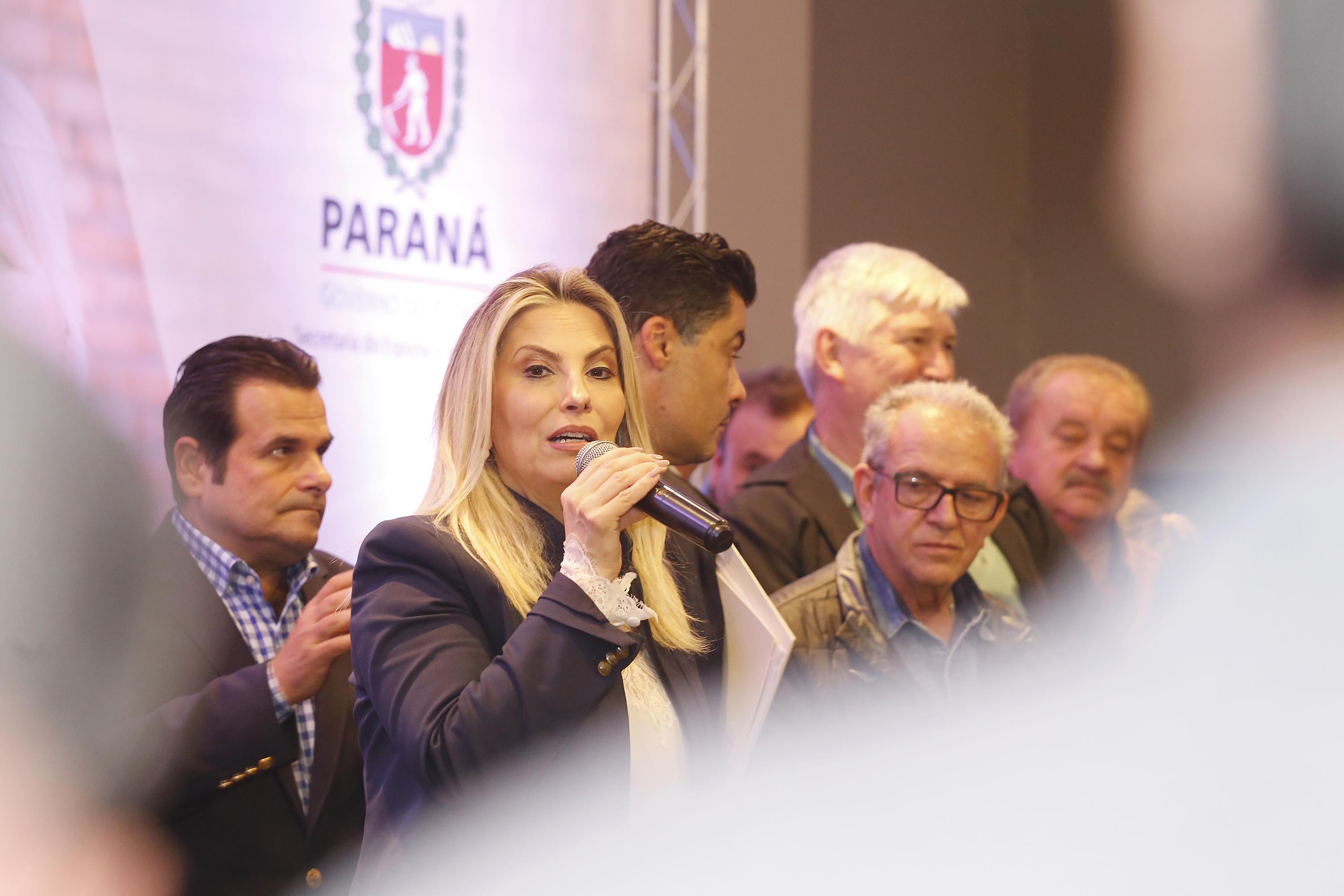 A governadora Cida Borghetti autorizou nesta quinta-feira (5), em Ponta Grossa, R$ 24 milhões para obras e ações em 45 municípios da região dos Campos Gerais. Ela assinou também autorização para a construção de 40 unidades para famílias de idosos, dando continuidade ao programa Morar Bem Paraná - Terceira Idade.