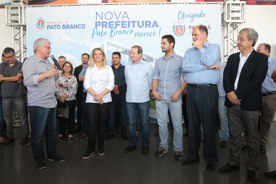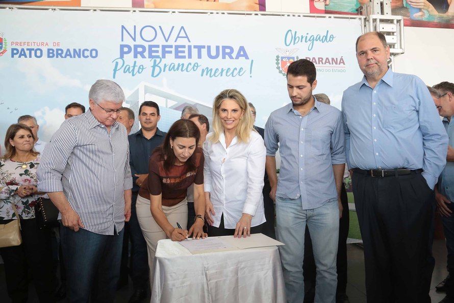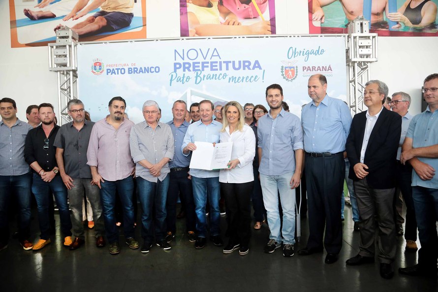 NOVA SEDE - Pato Branco teve autorizada a abertura de licitação para a construção de um novo prédio para a prefeitura. O investimento é R$ 20 milhões. “O novo espaço, com estrutura moderna e auto sustentável, abrigará nossas secretarias municipais e também será um novo cartão-postal da cidade”, disse o prefeito Augustinho Zucchi. “Há muito tempo esperamos por isso. Hoje é um dia histórico”, afirmou.