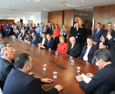PRESENÇAS – Participaram da solenidade os secretários da Justiça, Trabalho e Diretos Humanos, Artagão Junior; do Meio Ambiente e Recursos Hídricos, Antonio Bonetti, e do Planejamento e Coordenação Geral, Cyllêneo Pessoa; e os deputados estaduais Nelson Justus, José Carlos Schiavinato e Stephanes Junior.