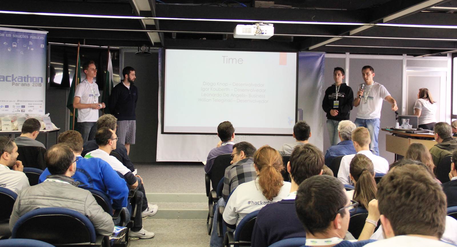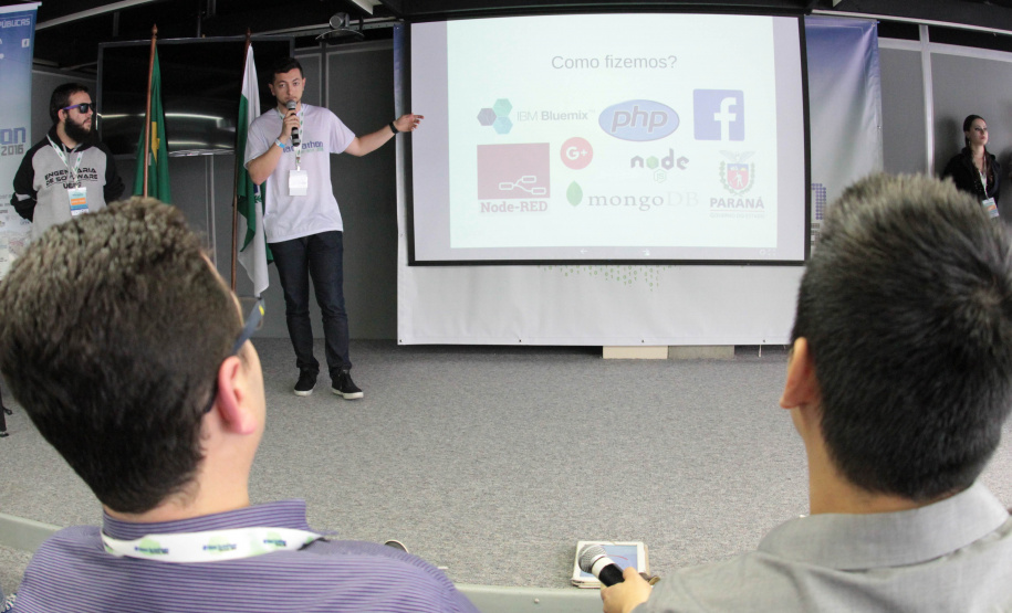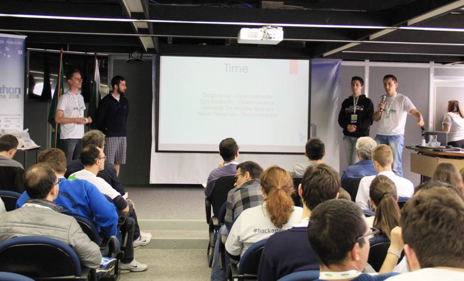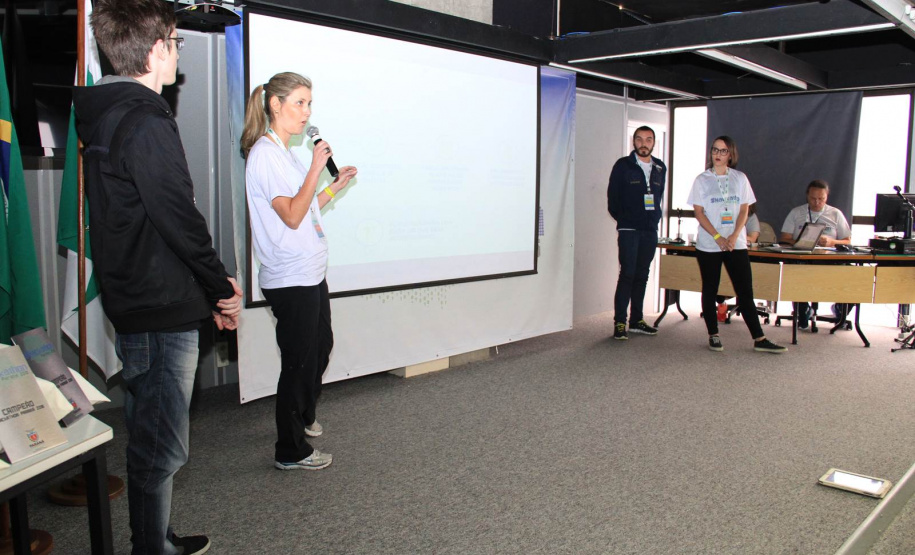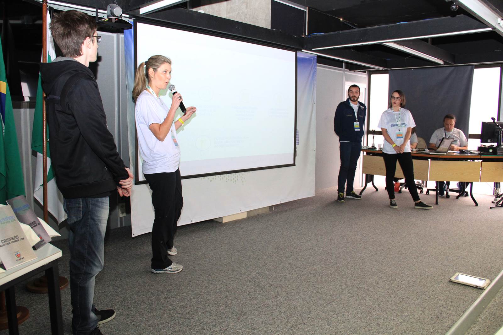 MIMOS - Concorrentes, mentores, apoiadores e voluntários elogiaram a realização do evento, em especial, por ser dentro do espaço da administração pública do Paraná. Foi possível ver e registrar a explosão de ideias e criatividade de cada uma das 11 equipes que apresentou o resultado do trabalho realizado neste fim de semana. “Fomos muito bem tratados, mimados, mesmo. Mas foram muitas horas de trabalho, pouco descanso e muita massa cinzenta e criatividade. Foi uma honra participar deste Hackathon Paraná 2016 e pensar em alternativas para melhorar a vida em nossa cidade. É um privilégio e eu quero voltar em 2017”, disse, emocionada, Ana Bittencourt, a única jovem premiada. Os demais, nas duas equipes, só rapazes.