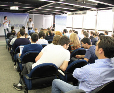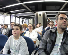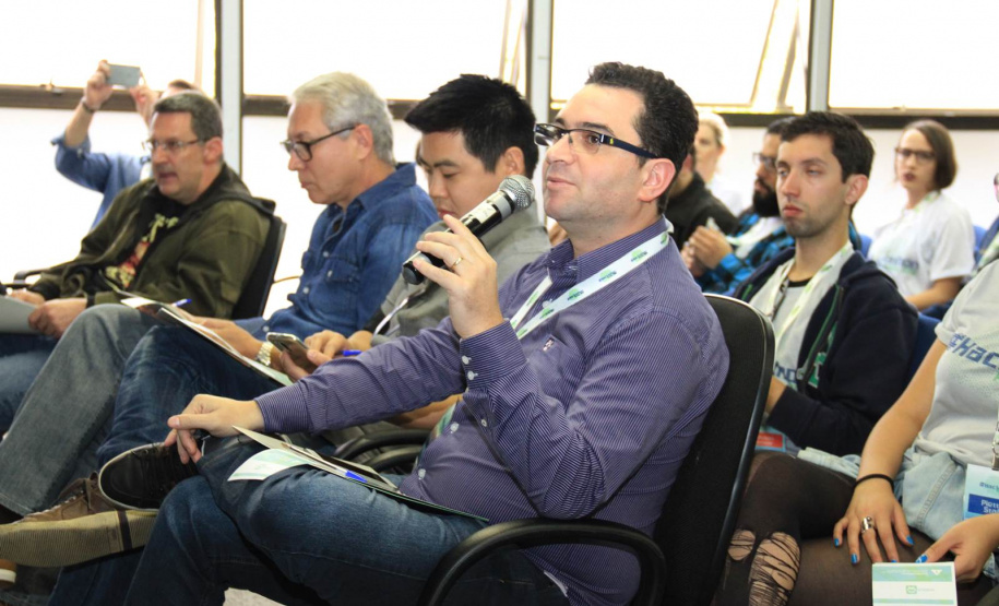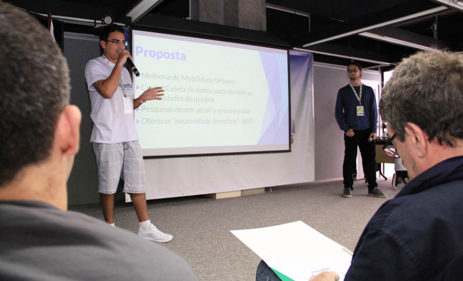 SOLUÇÕES EFETIVAS - Ratinho Junior enfatizou a oportunidade de abrir espaços de interação para a comunidade ajudar a pensar e a buscar soluções efetivas aos problemas da cidade, com serviços públicos de qualidade e mais baratos. Da mesma maneira entende o coordenador executivo do Conselho Estadual de Informação e Telecomunicações Paraná da Celepar, Mauro Sorgenfrei. “São jovens interagindo com o setor público e trazendo ideias práticas que poderão ser usadas no futuro pelo próprio Governo do Paraná”, destacou. E a consultora do SEBRAE, Yara Lúcia de Menezes Garcia, concluiu: “eles trazem, do mundo acadêmico, tecnologias inovadoras, inteligentes e sedutoras”.