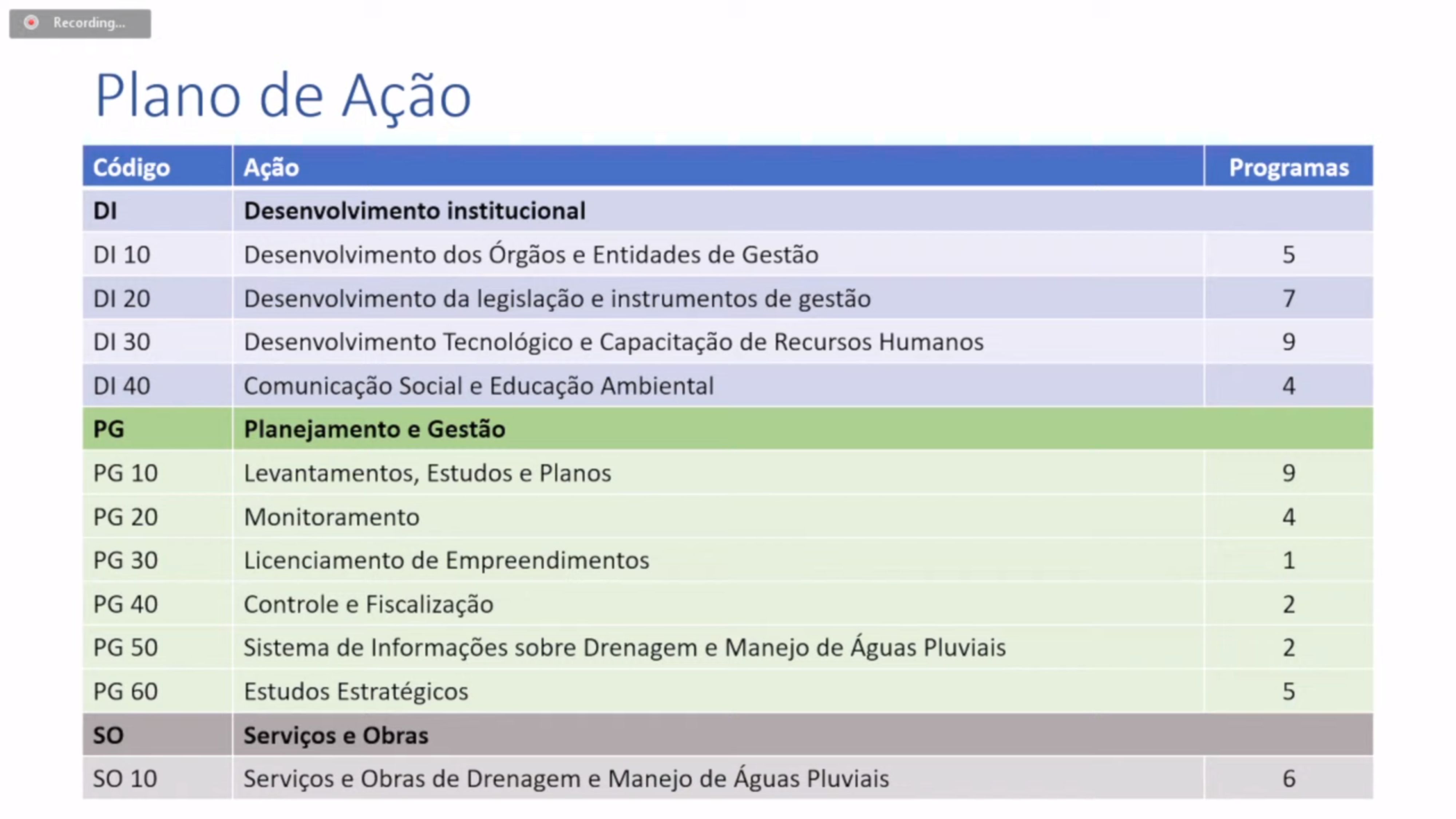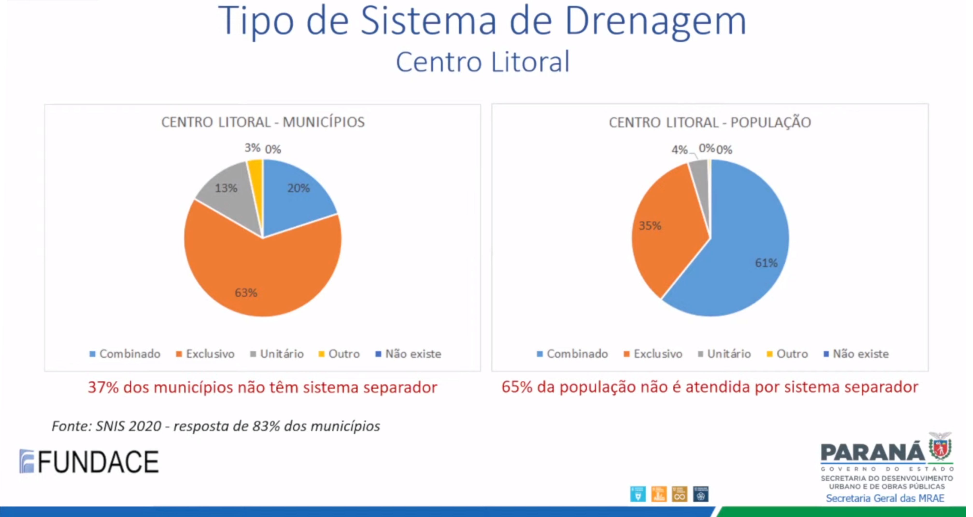 Na primeira parte das sessões desta quinta-feira, foram mostrados os Estudos Jurídico-Institucionais e Econômicos; e os Estudos Técnicos nas áreas de Água e Esgoto, Drenagem e Manejo de Águas Pluviais Urbanas e de Saneamento Rural. Entre as informações apresentadas, está a de que os Municípios que já tem os seus Planos de Manejo de Drenagem poderão mantê-los, mesmo após a regionalização, desde que não contrarie as diretrizes microrregionais.