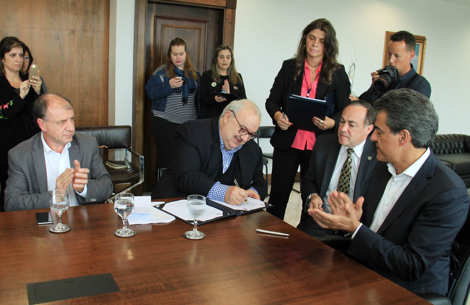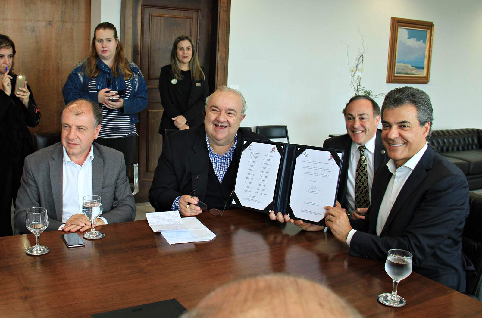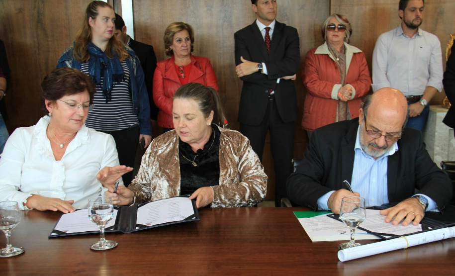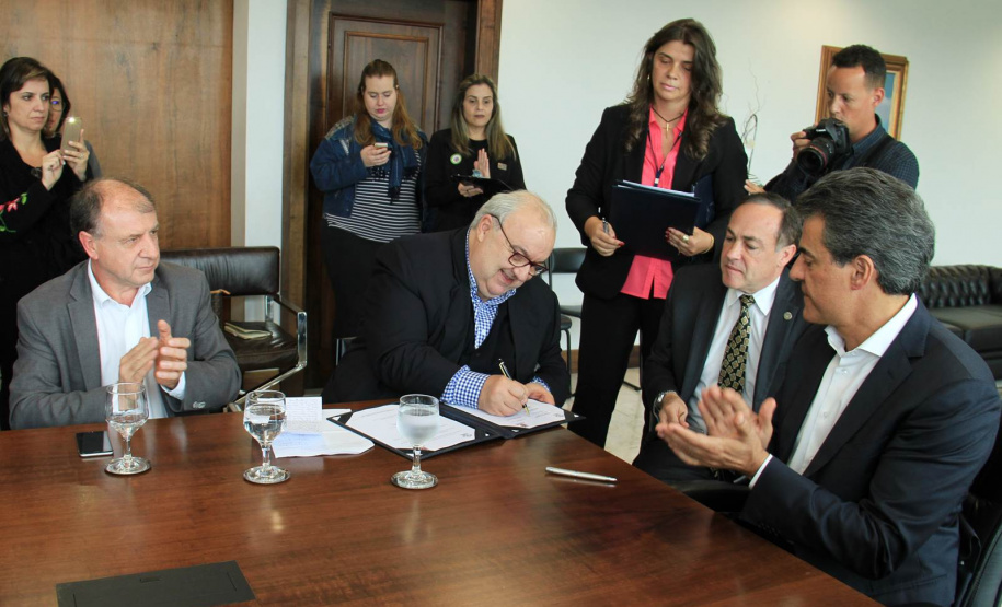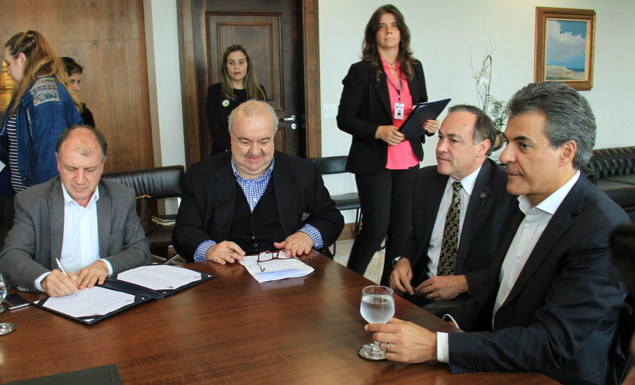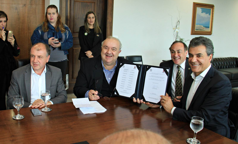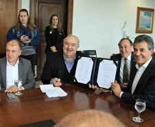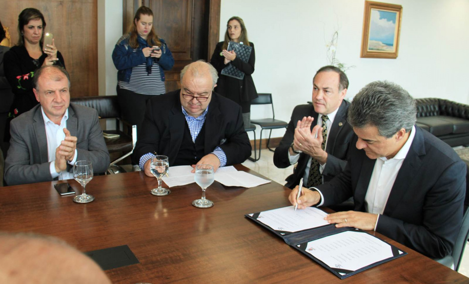 PRESENÇAS – Participaram da solenidade os prefeitos de Colombo, Beti Pavin; Campo Largo, Marcelo Puppi, e de Quatro Barras, Ângelo Andreatta; o vice-prefeito de Curitiba, Eduardo Pimentel; o diretor de Relações Institucionais e Políticas da Associação dos Municípios do Paraná e prefeito de Contenda, Marcos Stabach; o secretário da Administração e Previdência, Fernando Gighnone; o diretor-geral do Detran, Marcos Traad; o deputado federal Luciano Ducci e os deputados estaduais Alexandre Curi, Stephanes Junior e Francisco Bührer.