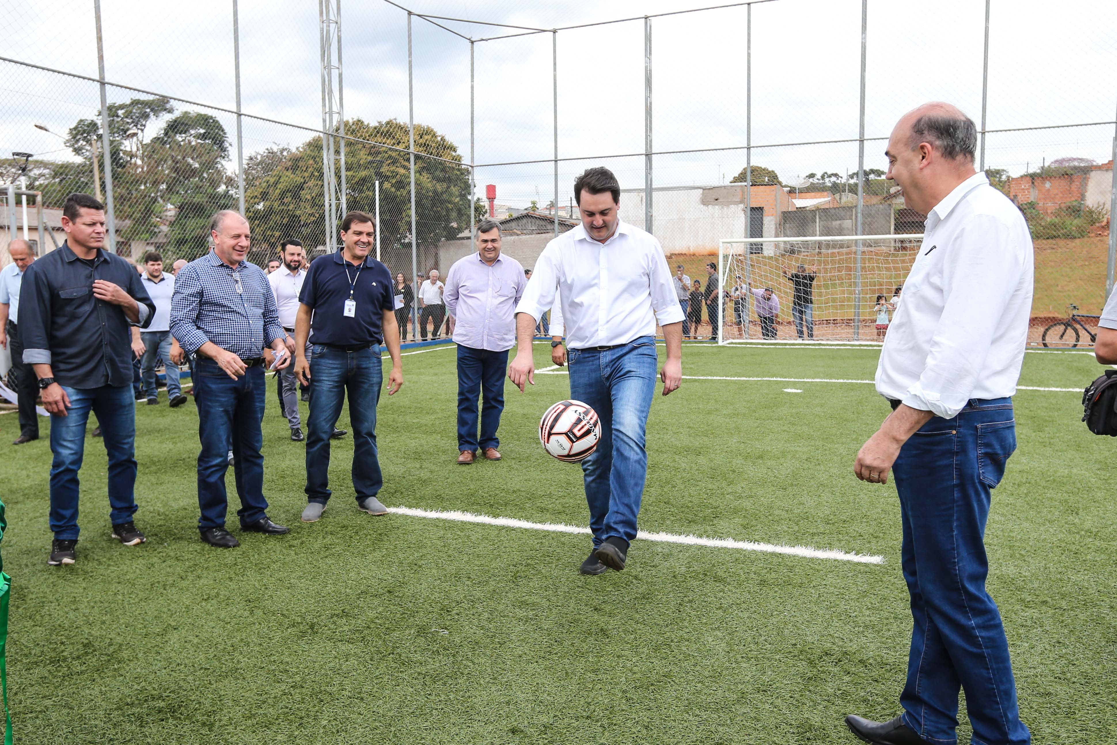 Ratinho Junior explicou que o projeto é inspirado em uma experiência da Alemanha e oferece equipamentos de qualidade para crianças e jovens. “É dar a oportunidade para os filhos dos paranaenses jogarem bola nos mesmos campos que os filhos dos alemães. “Fazemos questão de colocar esses projetos em bairros mais carentes para as crianças terem a oportunidade de jogar bola em um local de qualidade, incentivar a prática esportiva e deixá-las longe de problemas, como as drogas”, afirmou.