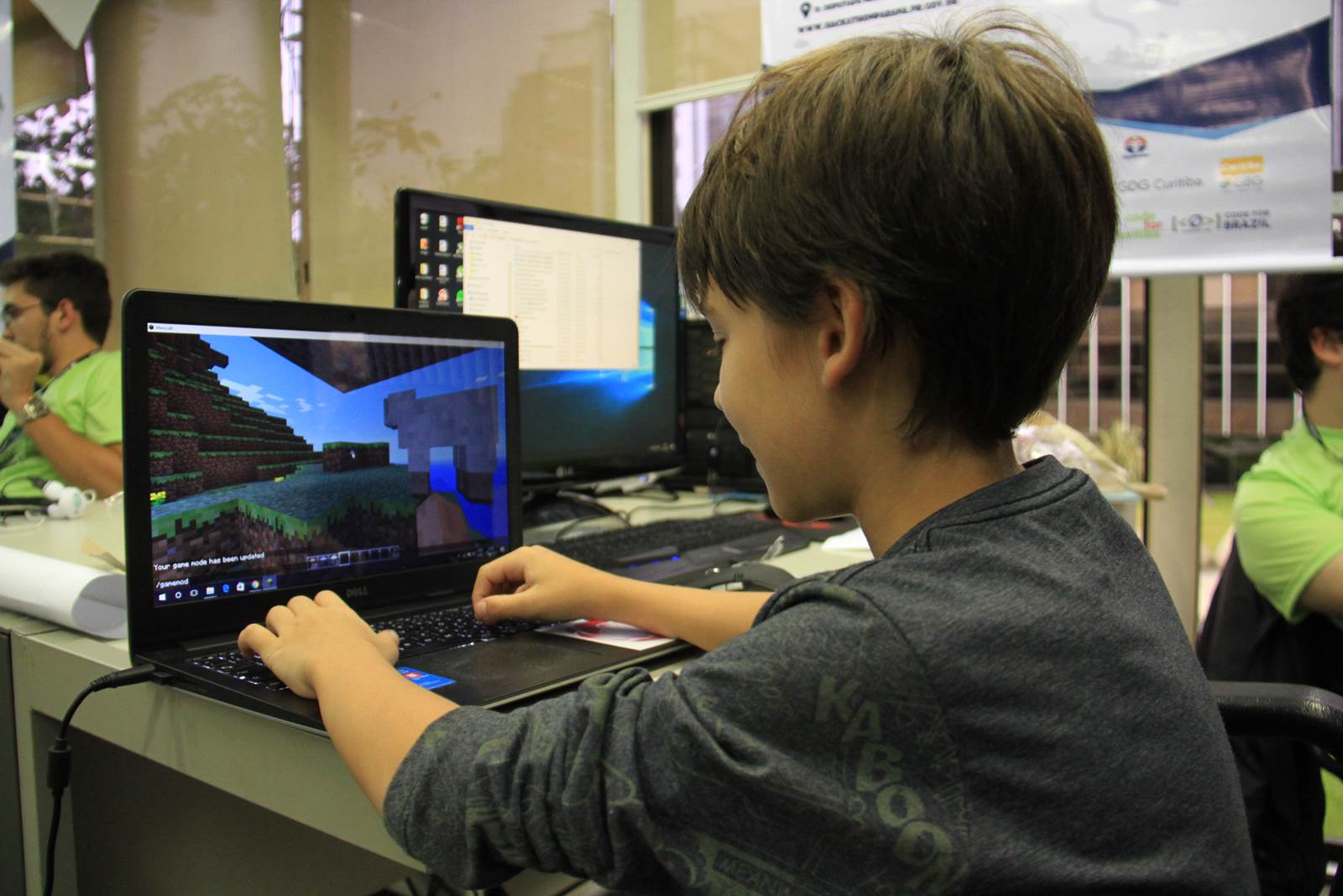 Daniel deu o conselho de que, para ser programador, é preciso ser persistente. Mas que, no fim vale a pena, assim como está valendo a pena para ele (Daniel) neste momento. “Eu gosto de me aproximar e ficar observando o que eles estão fazendo no computador, para aprender. Quero ser programador para criar jogos e, talvez, ajudar pessoas”, afirmou o pequeno João.