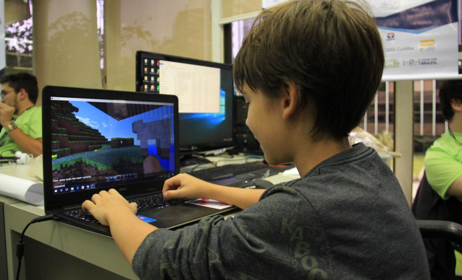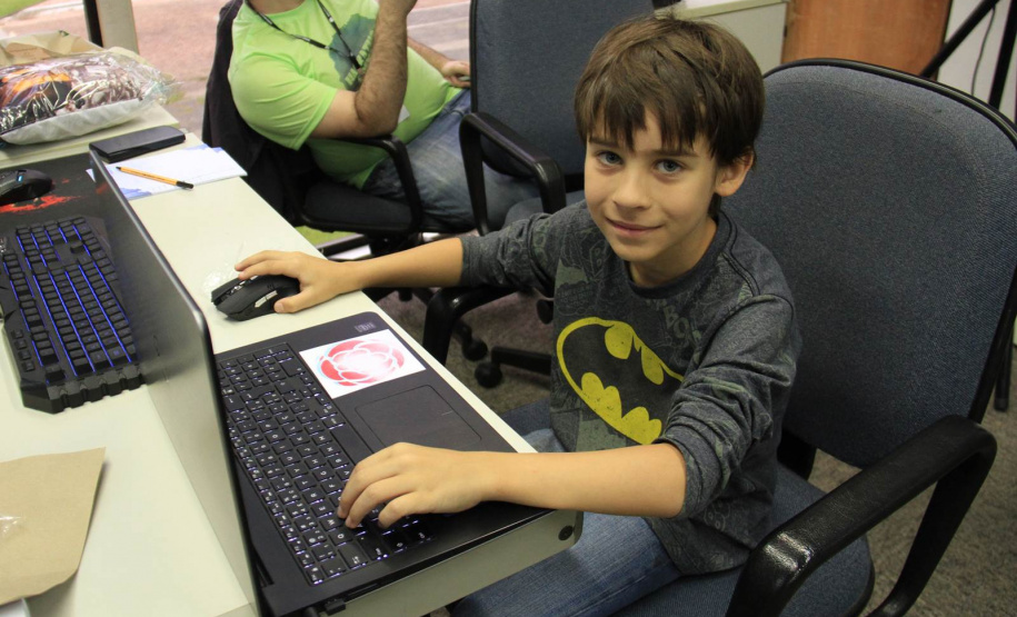 A maratona do Hackathon Paraná 2017, que acontece desde sexta-feira, 21, nas dependências da Secretaria do Desenvolvimento Urbano e no Serviço Social Autônomo (SEDU/Paranacidade), chama a atenção de muitas pessoas que procuram conhecer o desenvolvimento do evento. Entre essas visitas surgiu um garotinho de nove anos, João Luiz Busse. E, por alguns momentos, ele fez parte das atrações. Acompanhado do pai, Diogo Busse, o pequeno é um youtuber. João tem canal no Youtube, chamado “Lunático Nerd”, onde fala sobre videogames. No momento, ele estuda a possibilidade de criar mais um canal para falar sobre Le Parkour.