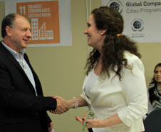 “Esta cooperação é muito importante para que possamos ter uma parceria e levar o desenvolvimento sustentável aos municípios. Além das nossas entidades governamentais parceiras, estamos fazendo um trabalho junto às Associações de Municípios do Paraná, para que todos os 399 municípios adiram ao Programa Cidades e aos ODS. Estamos, também, orientando os municípios para que coloquem os ODS em seu Plano Diretor, no Plano Plurianual (PPA) e na Lei Orçamentária Anual”, discursa Ortega.