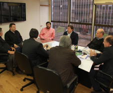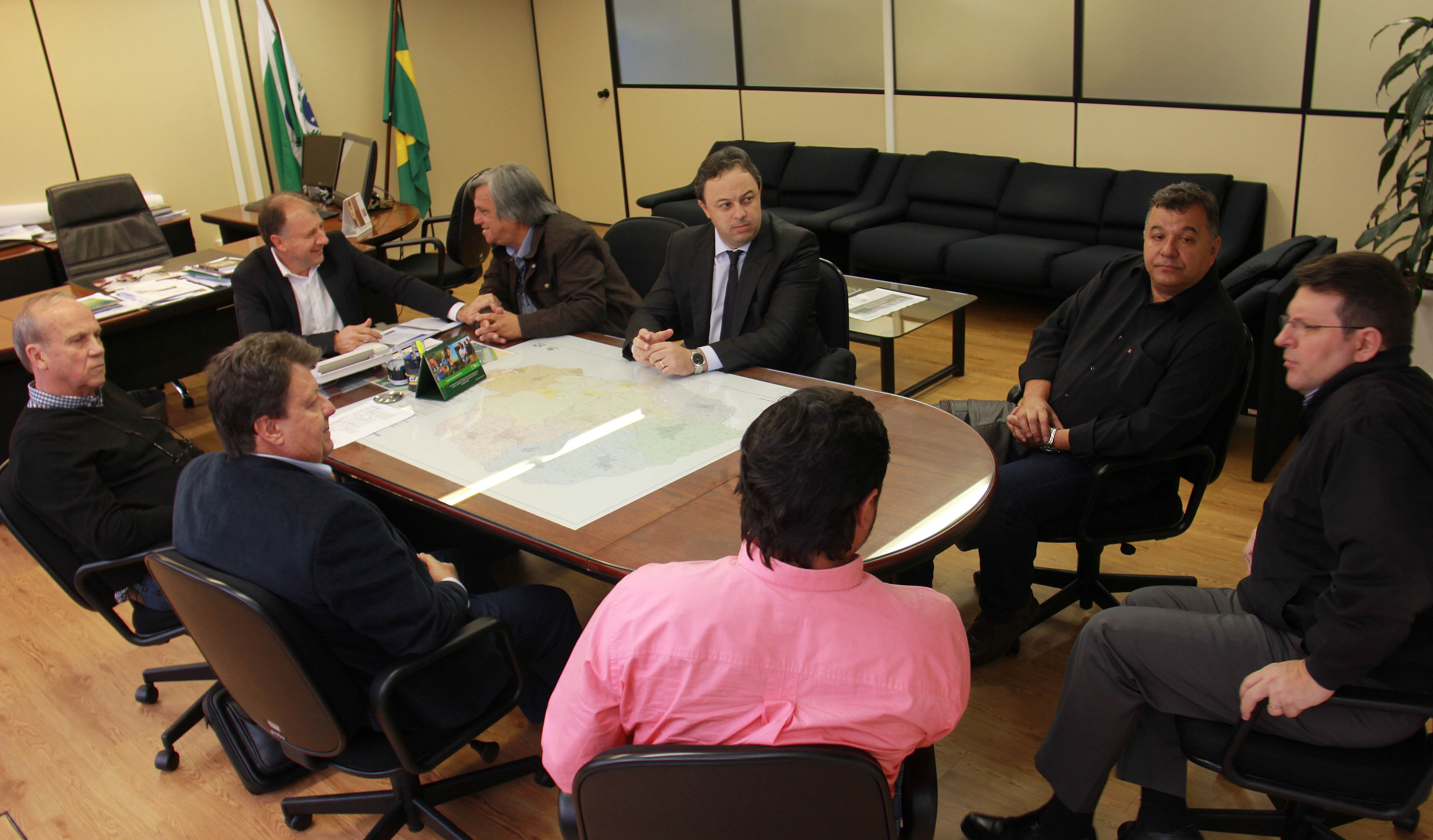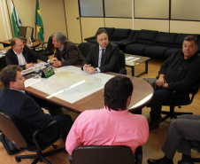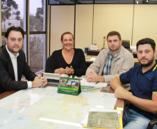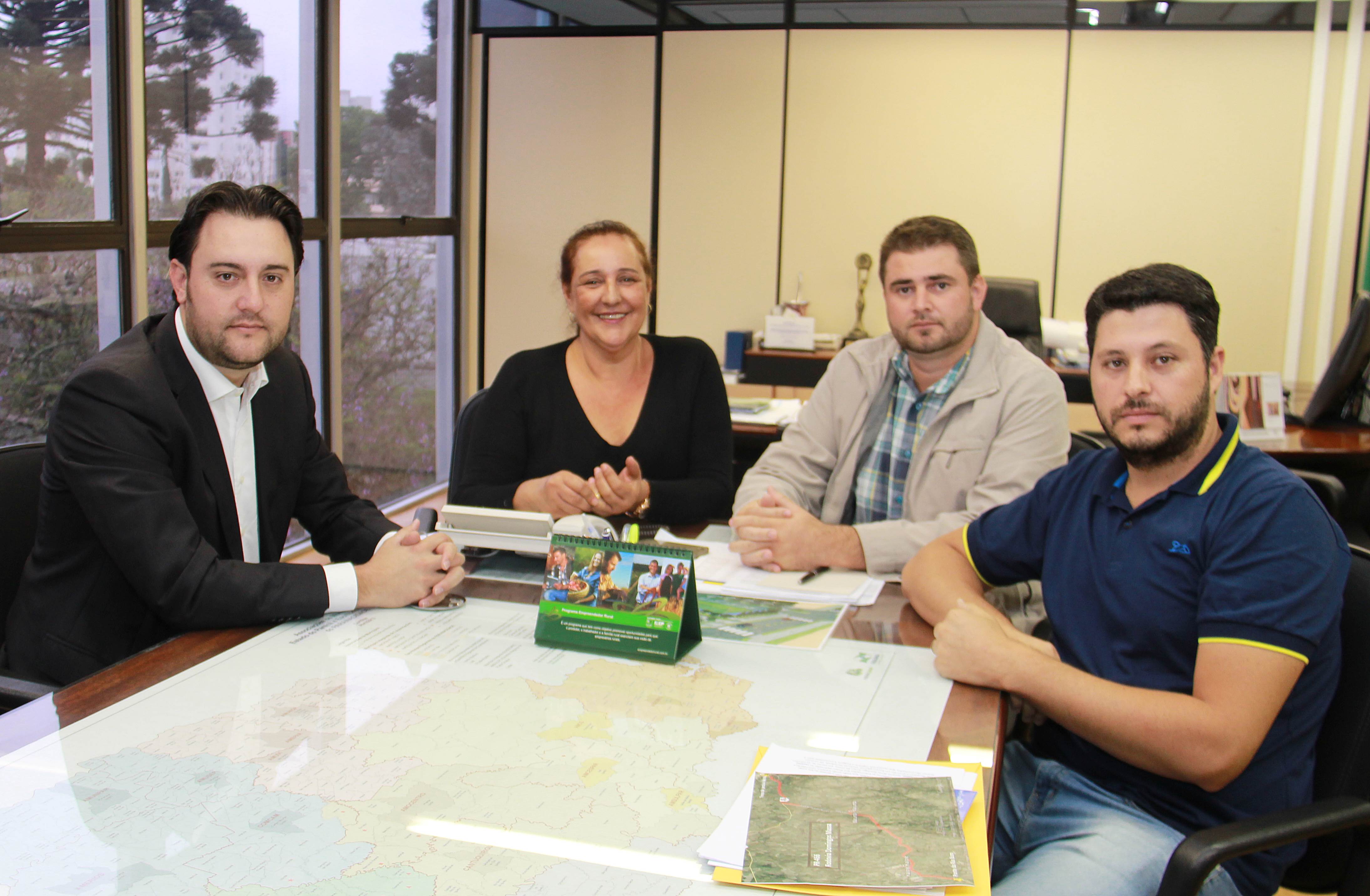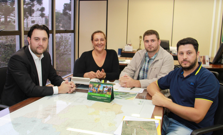 Lideranças do município de Marumbi estiveram na manhã desta quarta-feira, 04, na Secretaria do Desenvolvimento Urbano (SEDU) em audiência com o secretário da Pasta, Ratinho Junior. Em nome do prefeito de Marumbi, Marlon Castro Pavesi Pini, Elaine Ferreira e o vereador Gabriel Macare vieram saber da capacidade de endividamento daquele município para aplicação em prioridades elencadas pela população. Acompanhados do empresário Leandro Agostinho, eles também solicitaram apoio de Ratinho Junior para duas ações. Uma, junto à Secretaria de Segurança, para ajudar a levar mais uma viatura policial e garantir maior segurança à população de Marumbi. E, outra para que se concretize o recape asfáltico na Rodovia Domingos Massa, no trecho entre Distrito de São José, de Jandaia do Sul, passando pelos municípios de Marumbi, Kaloré e Borrazópolis.