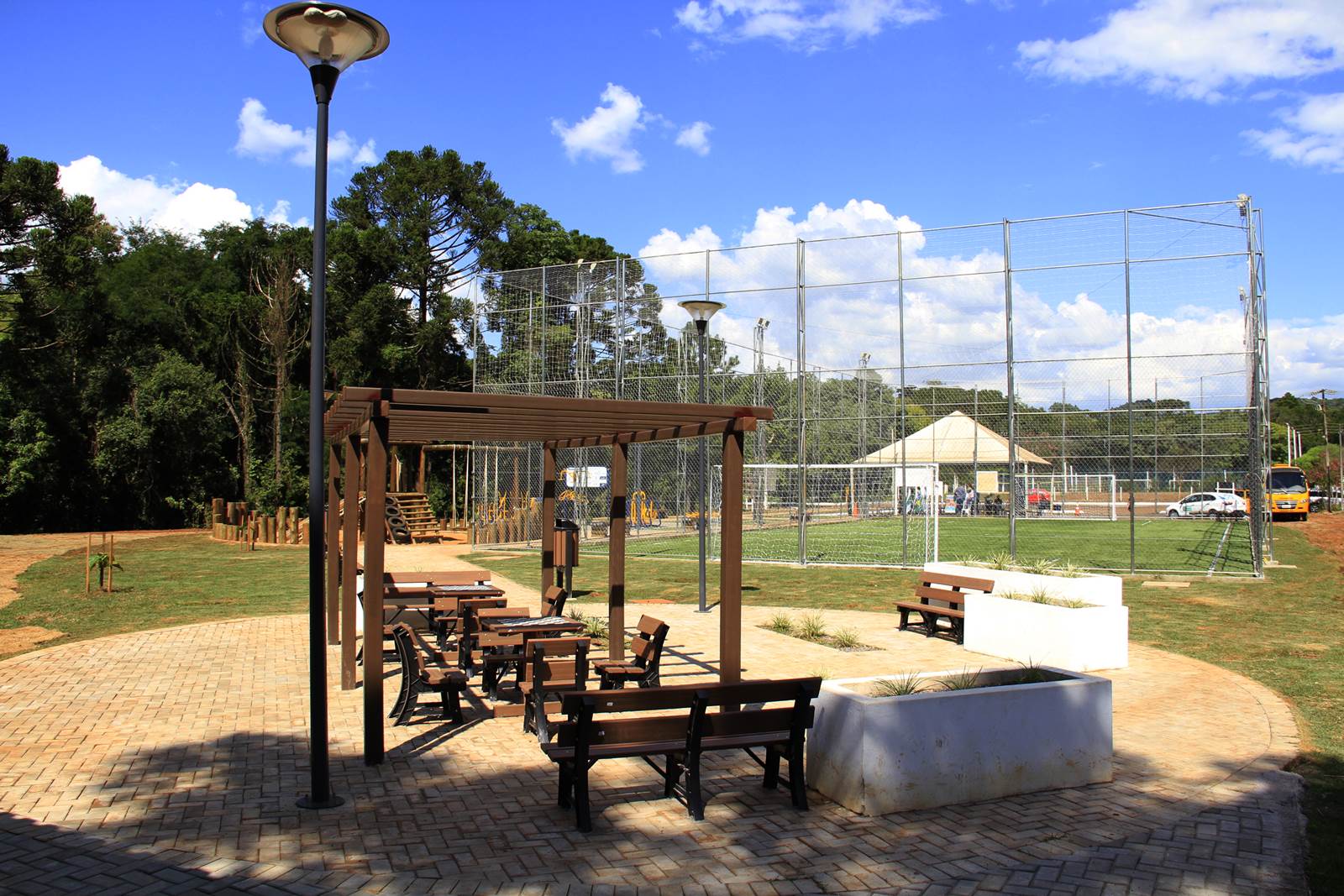 “Campo de futebol, iluminação para jogos à noite, academia ao ar livre para idosos, parque infantil, pista de caminhada, tabuleiro de xadrez e espaço para contra turno esportivo formam um conjunto de lazer garantido para toda a família. O Governo do Estado cria hábitos de vida mais saudável para todos. É um lugar para as crianças aproveitarem a infância e não aprenderem coisas erradas nas ruas”, assegurou Ratinho Junior.
