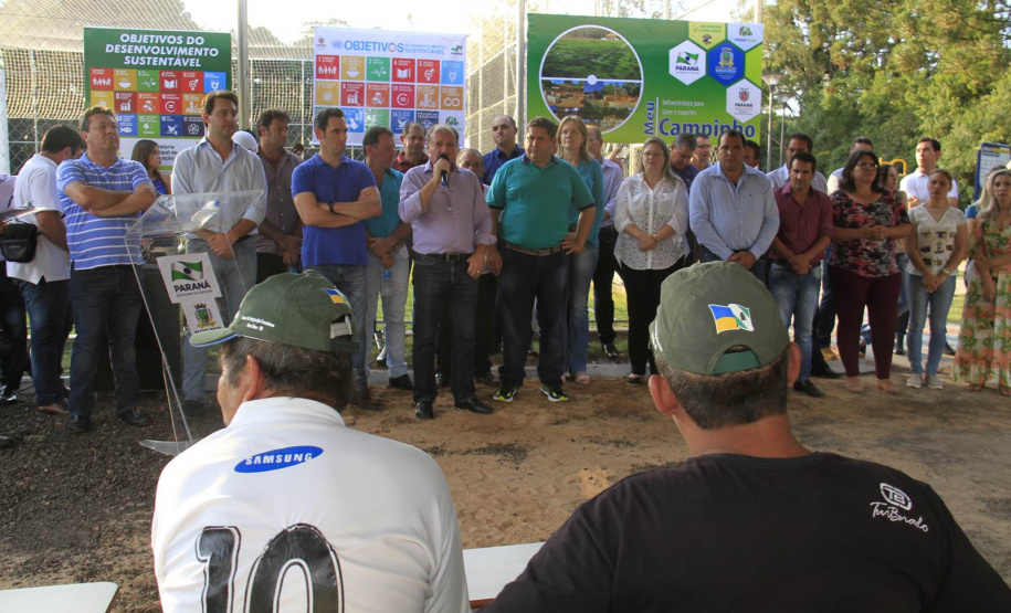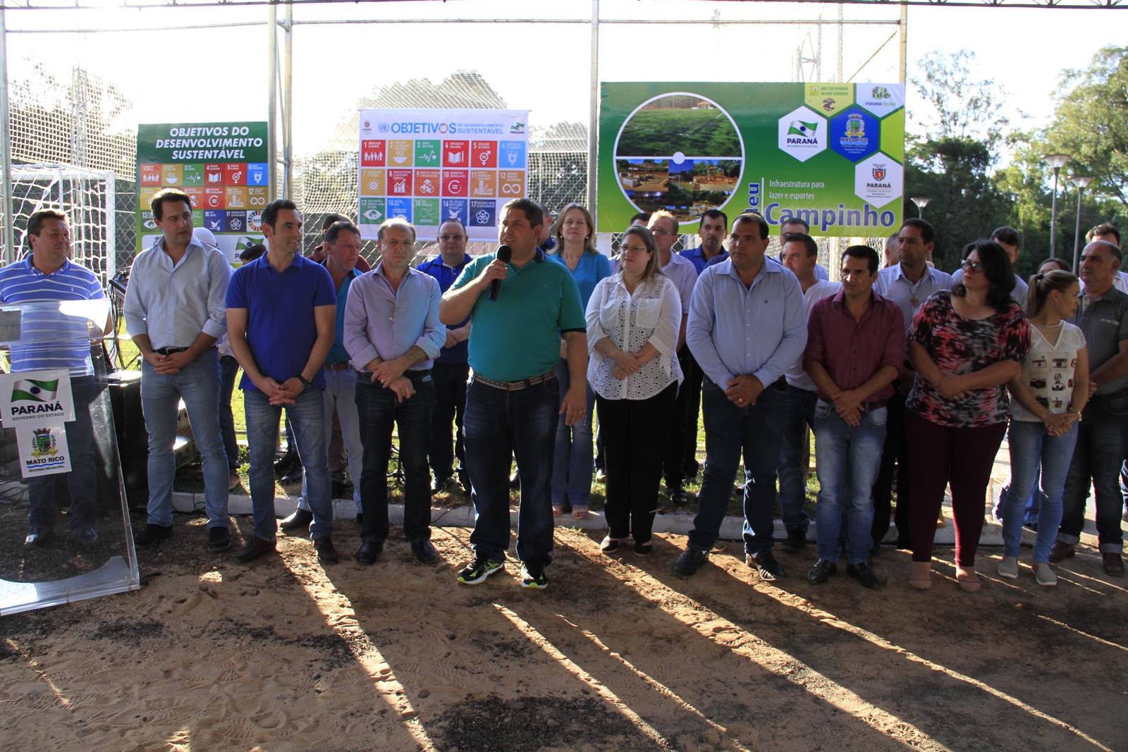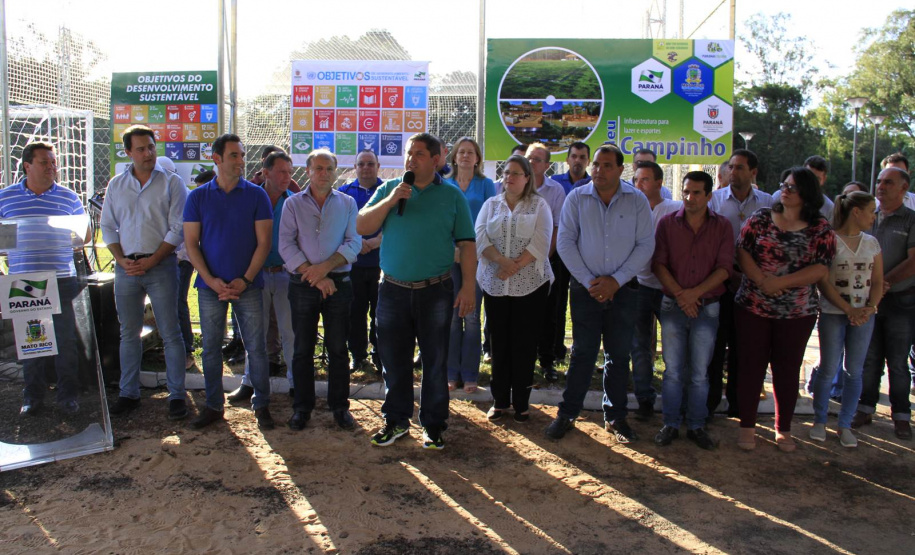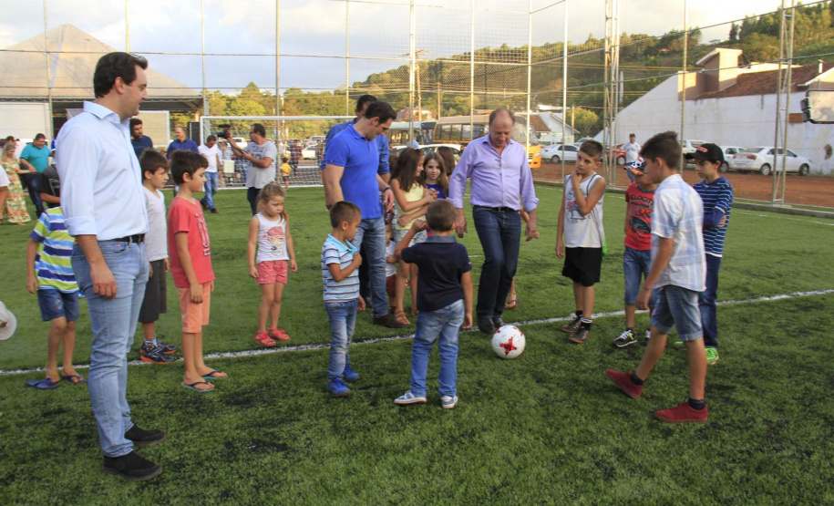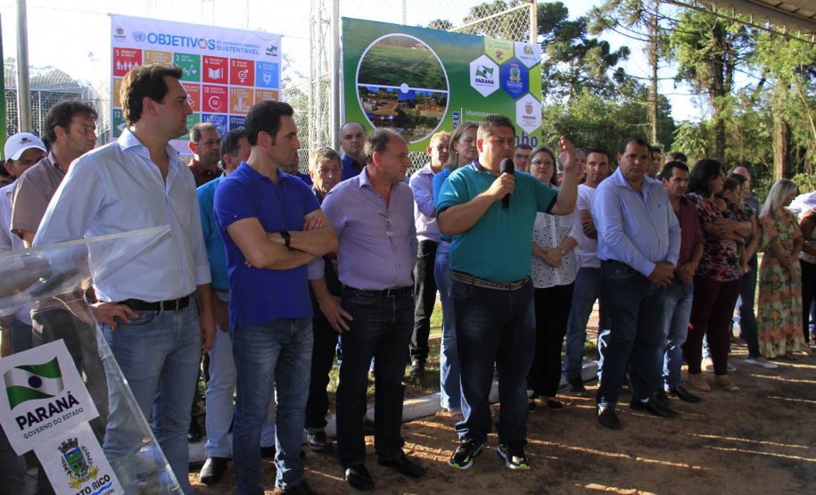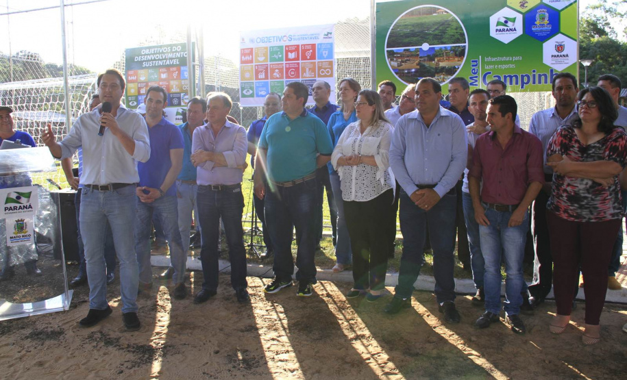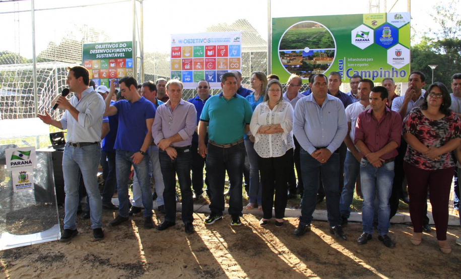 O município de Mato Rico, na Região Centro Sul do Paraná, ganhou nesta semana um espaço de lazer e esportes para abrigar toda a família, de crianças pequenas até idosos. Com festa, muitos fogos e a presença do secretário de Estado do Desenvolvimento Urbano (SEDU), João Carlos Ortega, e do ex-secretário estadual da Pasta e mentor do Programa na administração pública, deputado estadual Ratinho Junior, deputados daquela Região, assim como prefeitos, vereadores e dezenas de famílias, foi inaugurado o primeiro “Meu Campinho” de Mato Rico. “Hoje é um dia histórico para o Governo do Paraná”, disse Ortega.