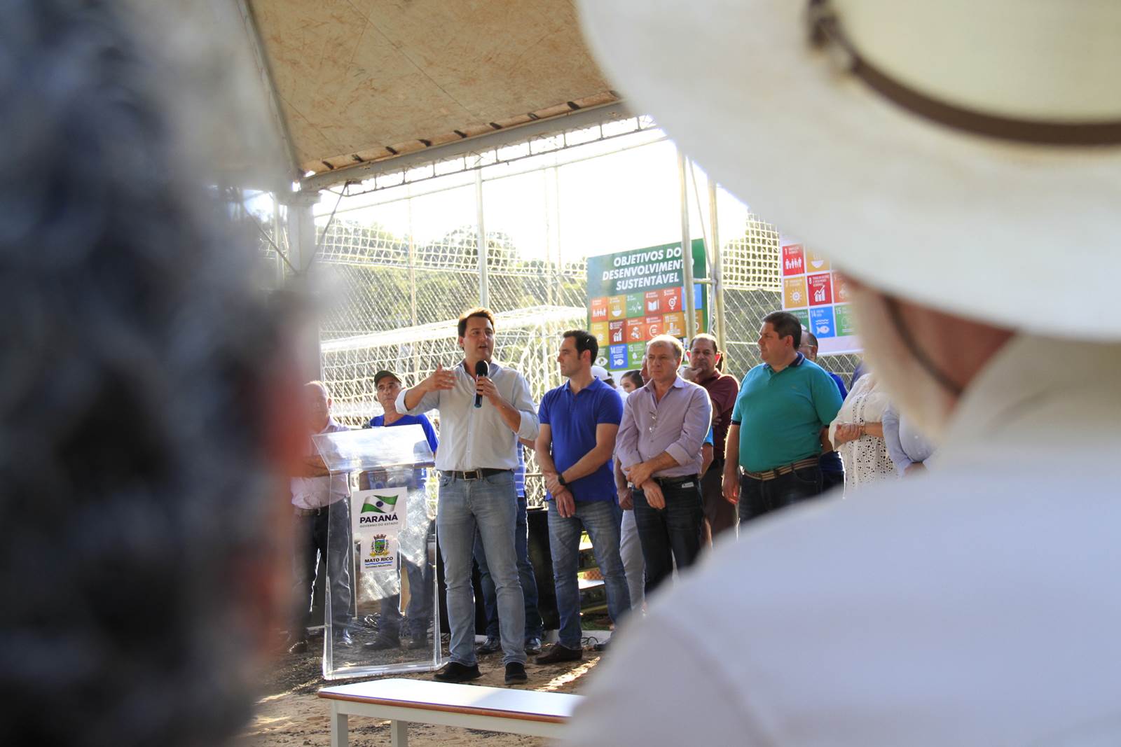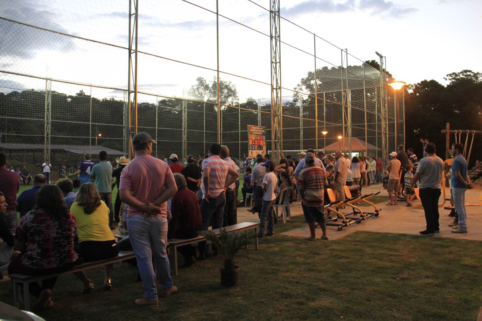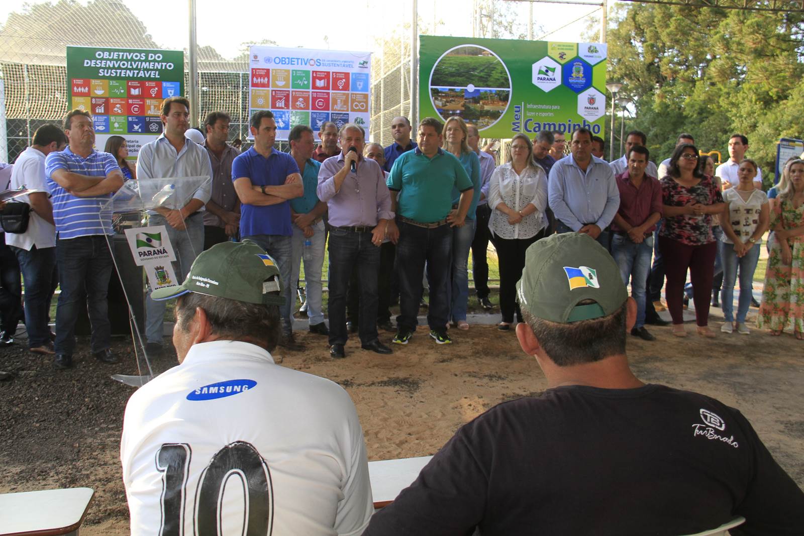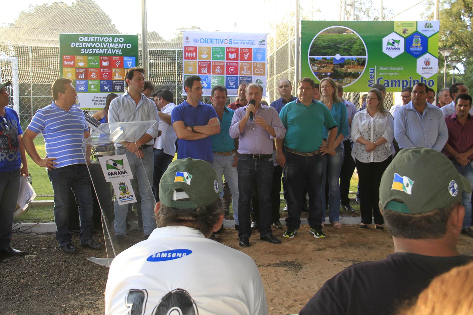 O município de Mato Rico, na Região Centro Sul do Paraná, ganhou nesta semana um espaço de lazer e esportes para abrigar toda a família, de crianças pequenas até idosos. Com festa, muitos fogos e a presença do secretário de Estado do Desenvolvimento Urbano (SEDU), João Carlos Ortega, e do ex-secretário estadual da Pasta e mentor do Programa na administração pública, deputado estadual Ratinho Junior, deputados daquela Região, assim como prefeitos, vereadores e dezenas de famílias, foi inaugurado o primeiro “Meu Campinho” de Mato Rico. “Hoje é um dia histórico para o Governo do Paraná”, disse Ortega.