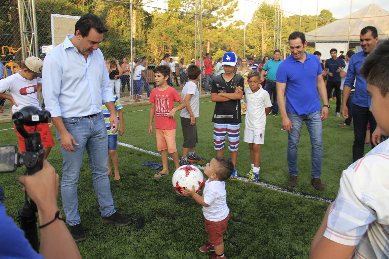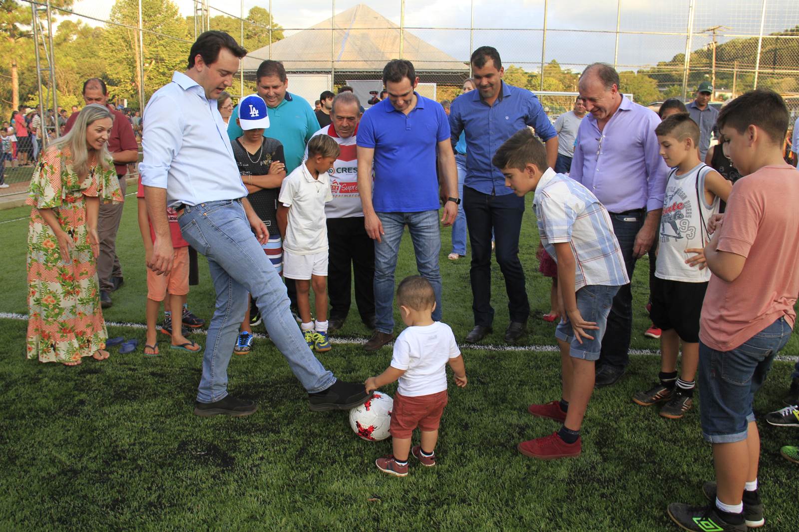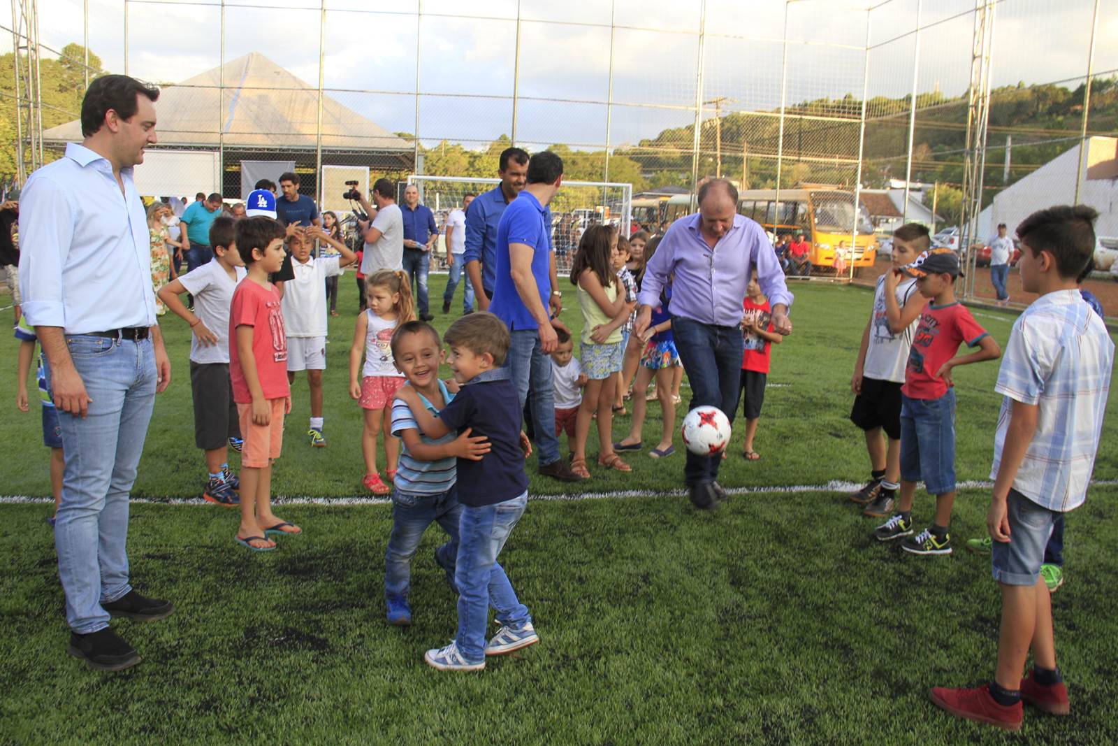 “O Programa “Meu Campinho”, ideia trazida da Alemanha, pelo então secretário de Estado Ratinho Junior, e iniciado em 12 municípios, hoje atinge quase 100 municípios, agregando esporte, lazer e valores para toda a família. Em especial o “Meu Campinho” retira as crianças e adolescentes dos riscos das ruas e lhes proporciona novas oportunidades de vida. O Paraná é um celeiro de talentos, de repente, podemos ter novos campeões de futebol entre esta garotada”, destacou o secretário da SEDU.