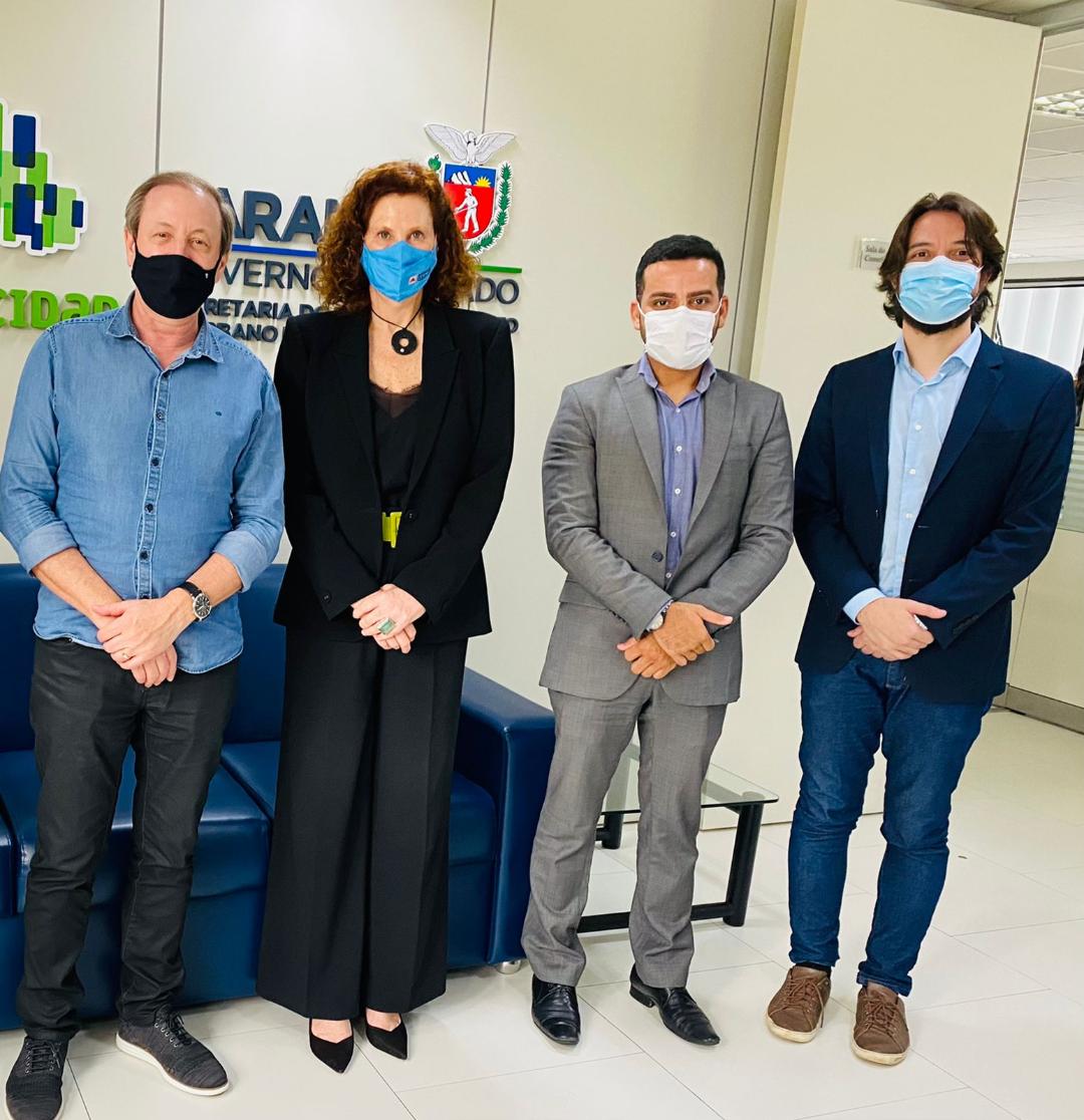 Para isso, a secretária estadual de Desenvolvimento Social de Minas Gerais, Elizabeth Jucá e Mello Jacometti, acompanhada do superintendente de Integração de Política Habitacional, Henrique Carvalho, e do assessor do Departamento de Habitação, Wesley de Jesuestiveram em visita à SEDU e à sua vinculada, COHAPAR. O secretário da SEDU, Augustinho Zucchi e a superintendente Executiva interina do Serviço Social Autônomo Paranacidade, Camila Mileke Scucato, os receberam e apresentaram todo o trabalho realizado pela SEDU e vinculadas – PARANACIDADE, COHAPAR, COMEC, PRED E CONCIDADES.