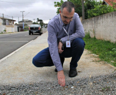 Você já imaginou uma calçada feita com concreto poroso? A tecnologia, já utilizada no Município de Pinhais, na Região Metropolitana de Curitiba (RMC), permite que a água da chuva alcance o lençol freático mais rapidamente ou faça o escoamento por dutos ou drenos localizados embaixo do pavimento. “É um processo que tem custos menores de implantação e manutenção, com maiores benefícios ao meio ambiente”, destaca o superintendente executivo do Serviço Social Autônomo Paranacidade, Álvaro Cabrini.
