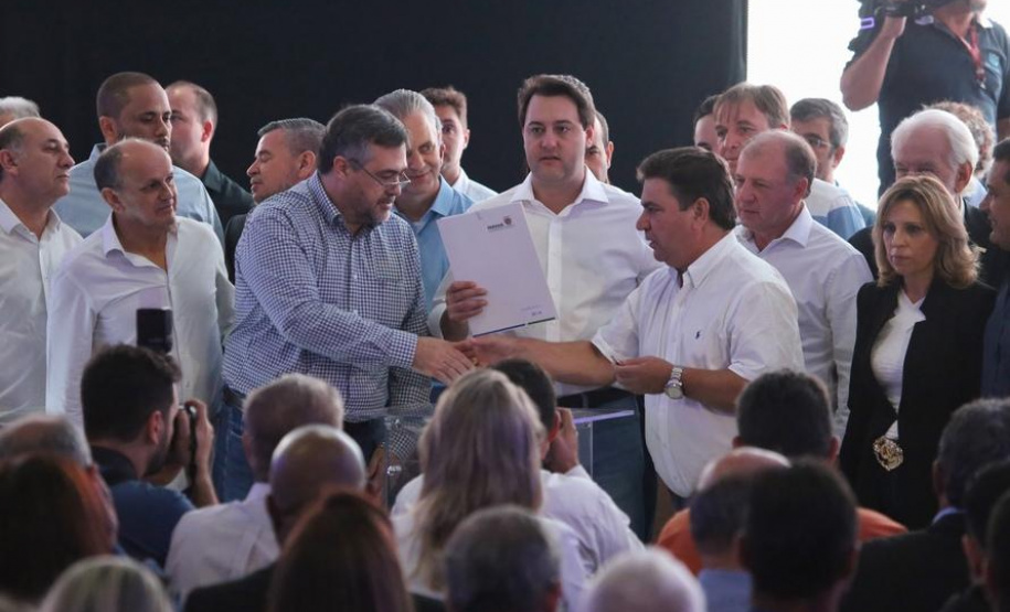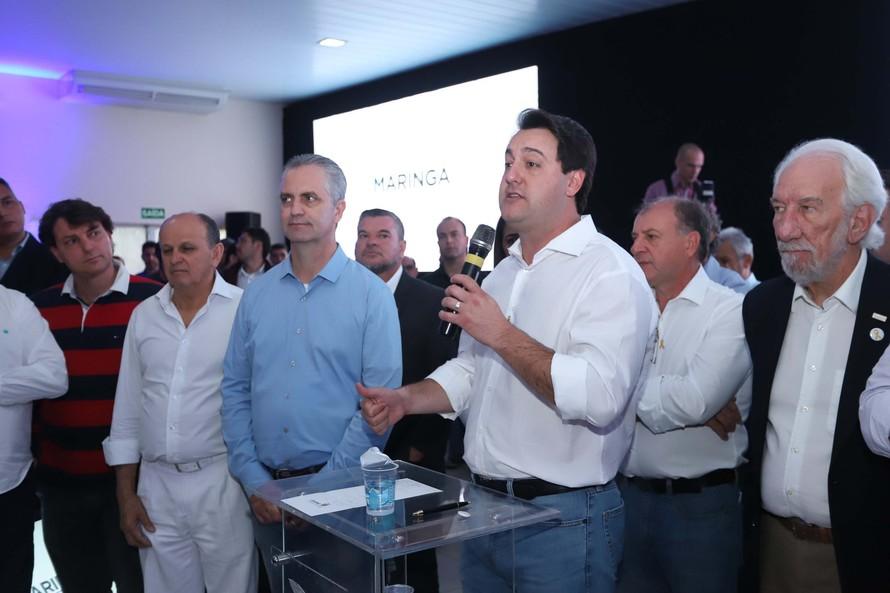 PRESENÇAS — Participaram também do encontro o vice-governador Darci Piana; o secretário de Estado da Agricultura e do Abastecimento, Norberto Ortigara; os presidentes da Associação dos Municípios do Paraná, Darlan Scalco; da Sociedade Rural de Maringá, Maria Iraclézia de Araújo; da Sanepar, Claudio Stabile; e da Cohapar, Jorge Lange; o diretor-geral do Detran, Cesar Kogut; o superintendente da Ciência, Tecnologia e Ensino Superior, Aldo Nelson Bona; o deputado federal Ricardo Barros e os deputados estaduais Tiago Amaral, Do Carmo, Evandro Araújo, Tião Medeiros, Soldado Adriano José, Alexandre Curi, Anibelli Neto, Doutor Batista, Delegado Jacovós e Arilson Chiorat.