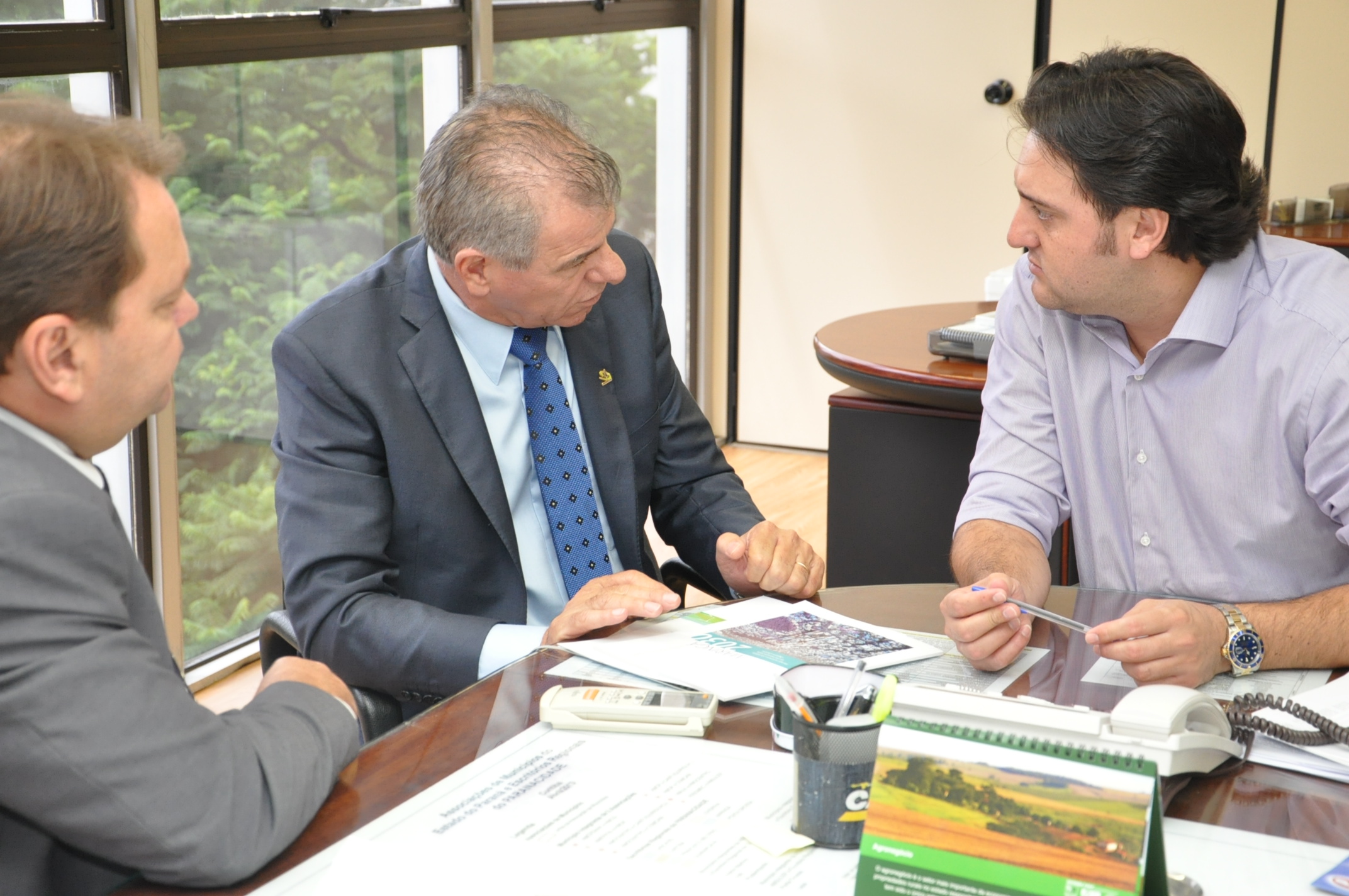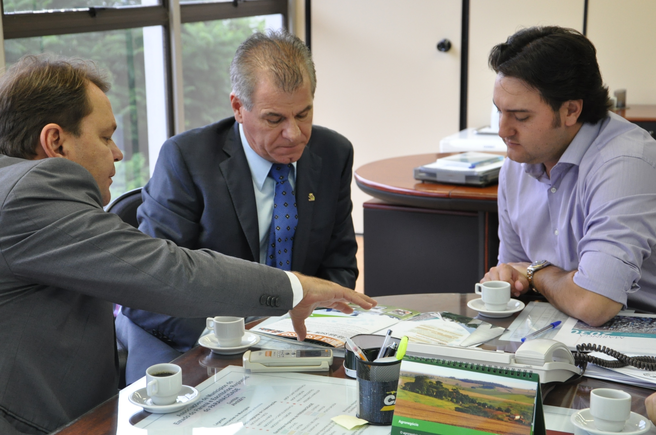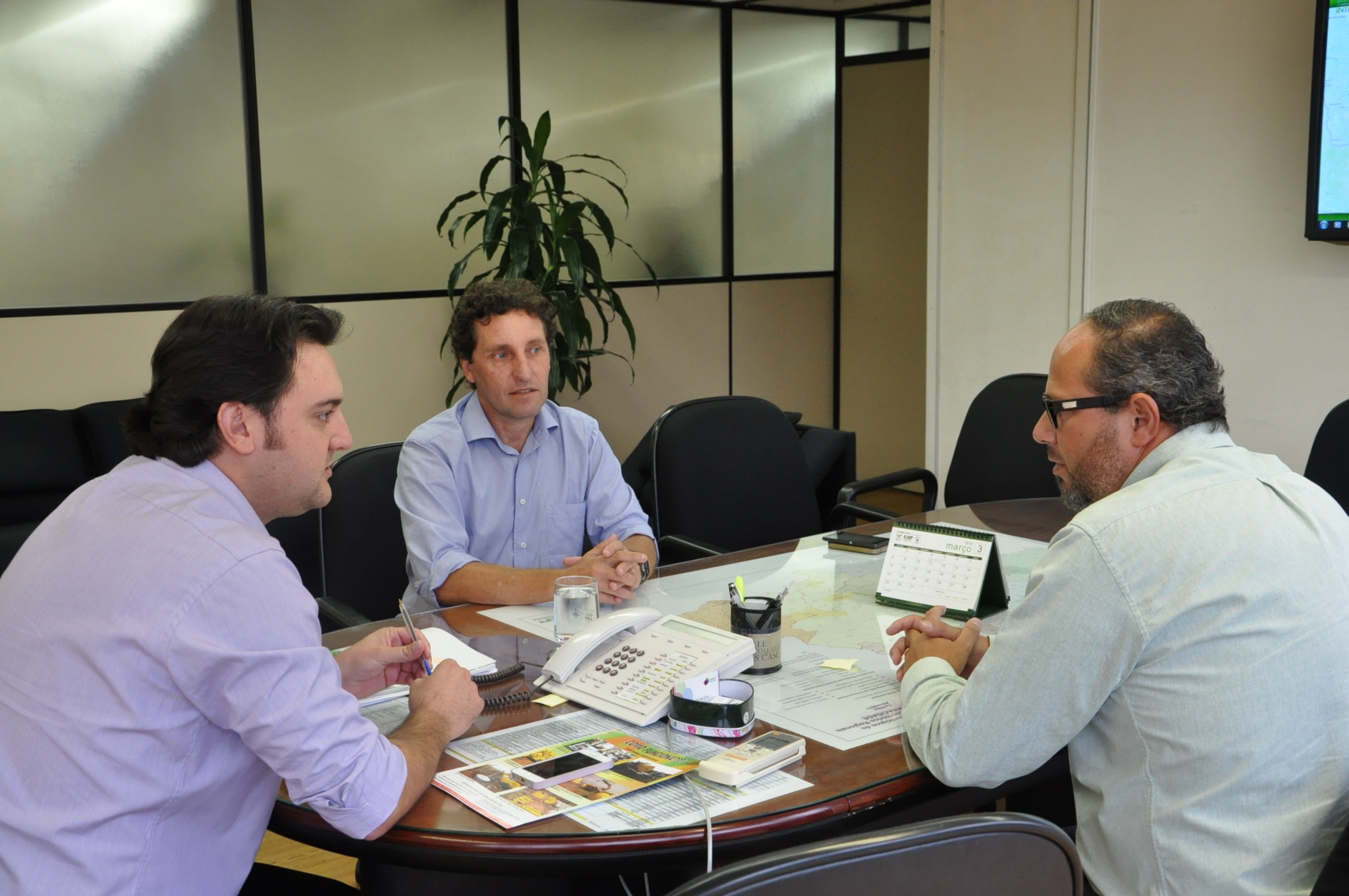 Na manhã desta quinta-feira, 05, o secretário do Desenvolvimento Urbano (SEDU), Ratinho Junior, recebeu prefeitos de duas diferentes Regiões do Paraná: da Metropolitana de Curitiba (RMC) e do Setentrião Paranaense. Desta última, o prefeito Roberto Puppin, planeja voos mais altos com a apresentação do Projeto Aeronáutico de Maringá. Da mesma Região, mas com prioridades diversas, o prefeito de Paiçandu, Tarcísio Marques dos Reis, e o de Piraquara da RMC, Marcus Tesserolli, reivindicam recursos para infraestrutura no solo. Ambos precisam de pavimentação asfáltica em seus municípios. Já, com um folheto onde se lê, “uma Cidade Planejada para o Sucesso”, Puppin traça objetivos, diretrizes e estratégias para Maringá até 2030.