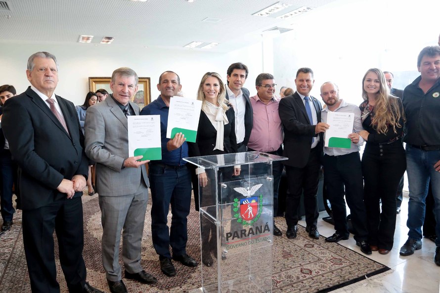 PRESENÇAS - Participaram da solenidade o chefe da Casa Civil, Dilceu Sperafico; os secretários da Fazenda, José Luiz Bovo; da Justiça, Trabalho e Direitos Humanos, Elias Thomé; da Infraestrutura e Logística, Abelardo Lupion; da Educação, Lúcia Cortez; do Meio Ambiente e Recursos Hídricos, Antônio Carlos Bonetti; de Assuntos Estratégicos, Edgar Bueno; da Administração e Previdência, Fernando Ghignone; da Comunicação Social, Alexandre Teixeira; e do Cerimonial e Relações Internacionais, Ezequias Moreira; os presidentes do BRDE, Orlando Pessuti; do Tecpar, Júlio Félix; do ITCG, Amilcar Cabral; da Compagas, Luiz Malucelli; e da Agepar, Omar Akel; o superintendente do Paraná Projetos, Cyllêneo Pessoa; o deputado federal Luiz Carlos Hauly; e os deputados estaduais Pedro Lupion, Maria Victória, Mara Lima, Cláudia Pereira, Tião Medeiros, André Bueno, Élio Rush, Alexandre Curi e Adelino Ribeiro.