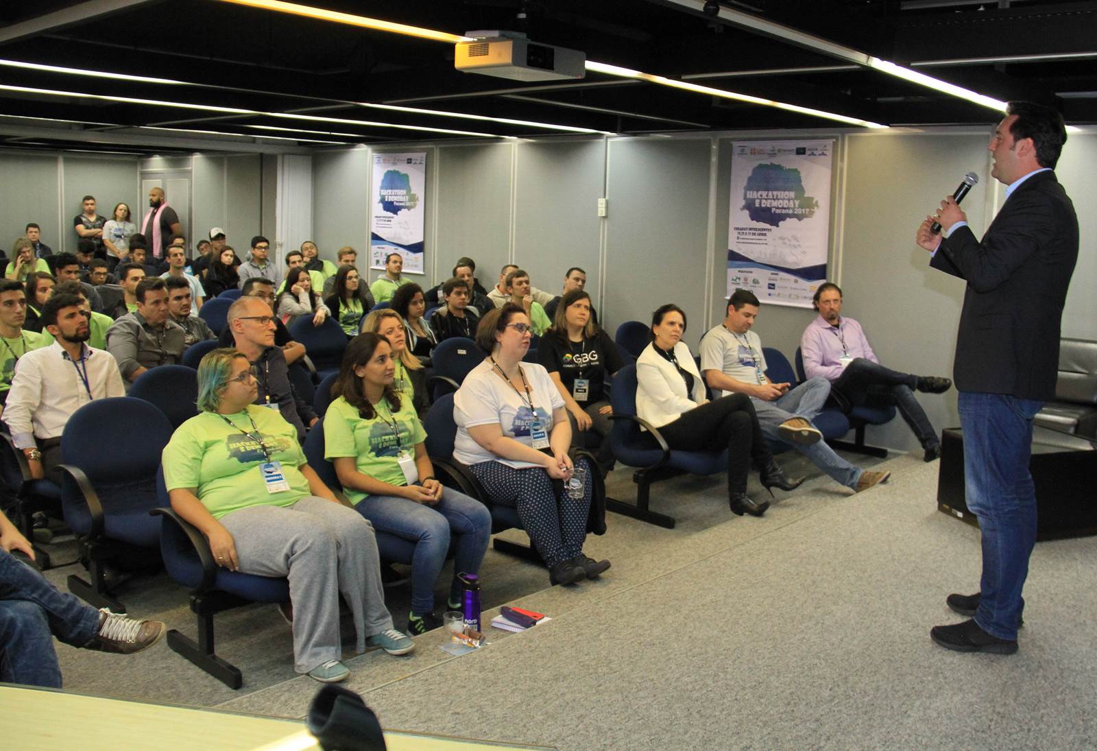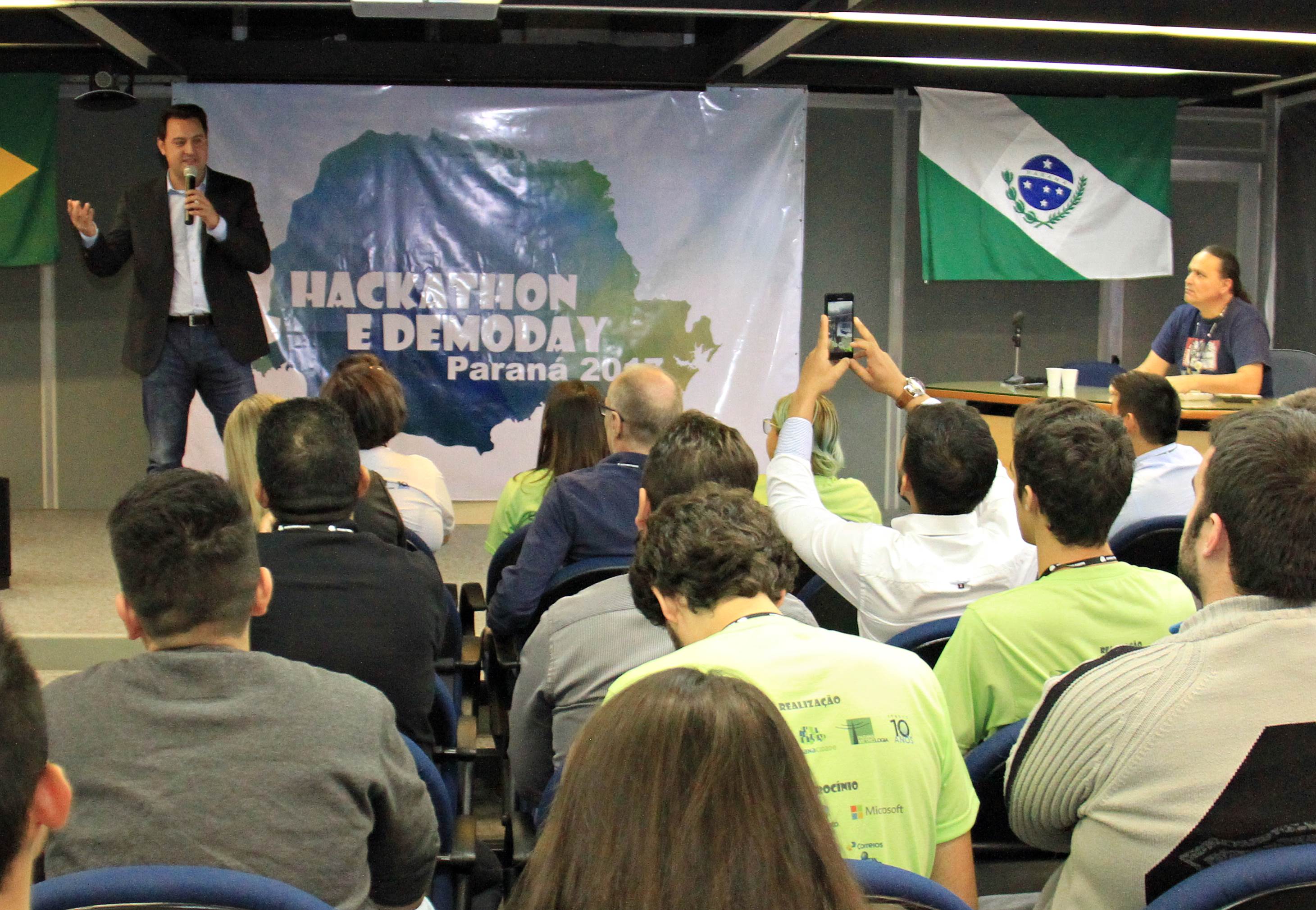 Antes das 8 horas, deste feriado de 21 de abril, as dependências da Secretaria do Desenvolvimento Urbano e do Serviço Social Autônomo (SEDU/Paranacidade), modificadas e adaptadas para abrigarem o Hackathon Paraná 2017 e o DemoDay Paraná 2017, já estavam lotadas de jovens “hackers”, mais mentores, palestrantes e comissão julgadora dos melhores trabalhos. Foi o início dos dois eventos que se estendem até domingo, 23. “É uma honra recebe-los aqui. O deputado estadual Guto Silva e eu trouxemos esta ideia da Coréia do Sul. O mundo mudou, as pessoas mudaram, a comunicação mudou. Mas o Poder Público no País não mudou. Pelo sucesso deste segundo Hackathon tenho a tranquilidade de afirmar que o Paraná pode, em breve, se transformar no Vale do Silício da América do Sul. Aqui estão reunidos jovens talentosos e criativos para inovarem com plataformas ideais os serviços públicos, com melhorias à vida dos cidadãos”, disse o secretário da SEDU, Ratinho Junior.