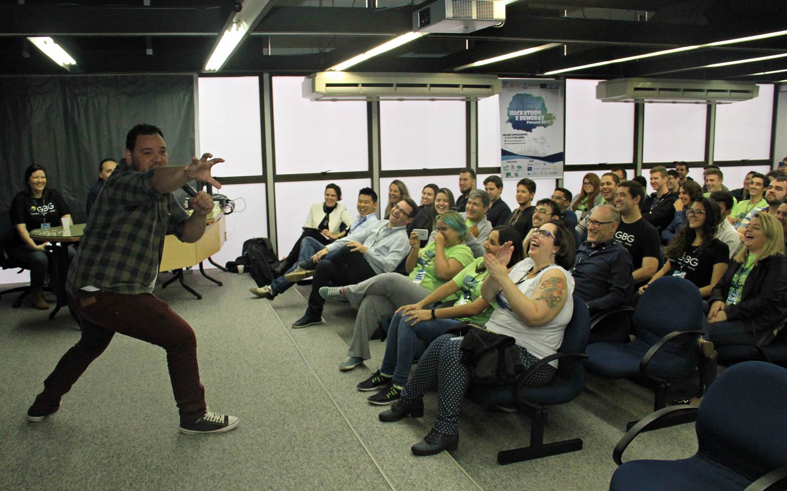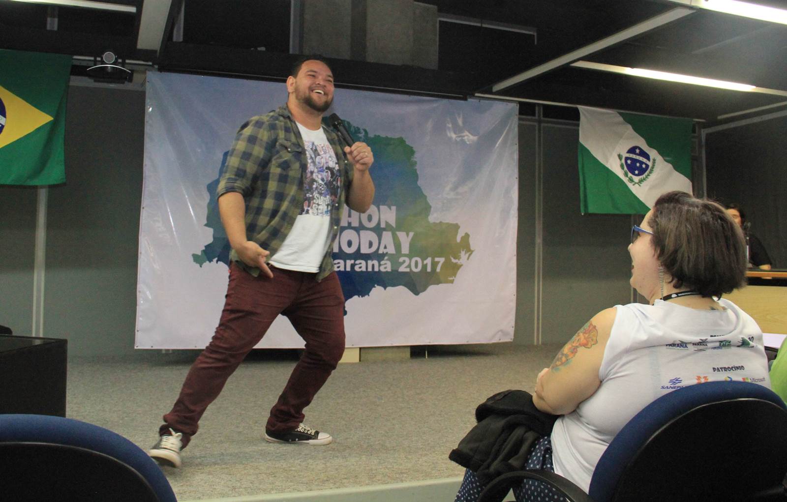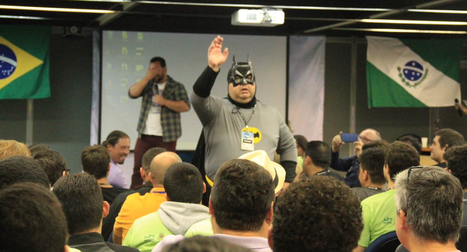 Para descontrair os presentes, dois funcionários do Paranacidade encarnaram a dupla de heróis, Batman e Robin, e subiram ao palco contando fatos hilários. Outro que também ajudou a descontrair os presentes foi o humorista Rafael Aragão. Ele disse que foi um desafio. “Foi um grande desafio enfrentar uma plateia intelectualizada e tão diferente da que eu costumo me apresentar. Mas logo encontrei um ponto de afinidade e o trabalho fluiu”, disse.