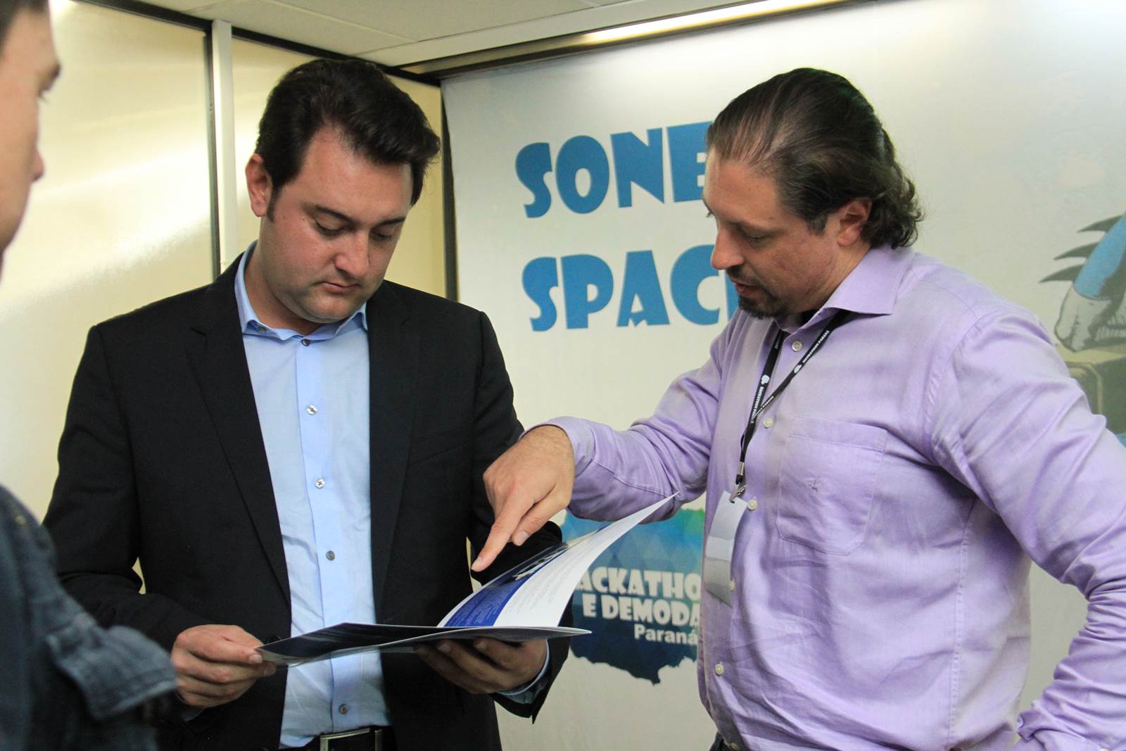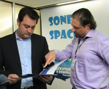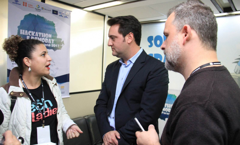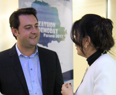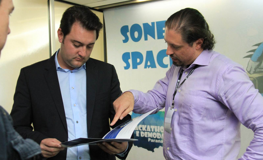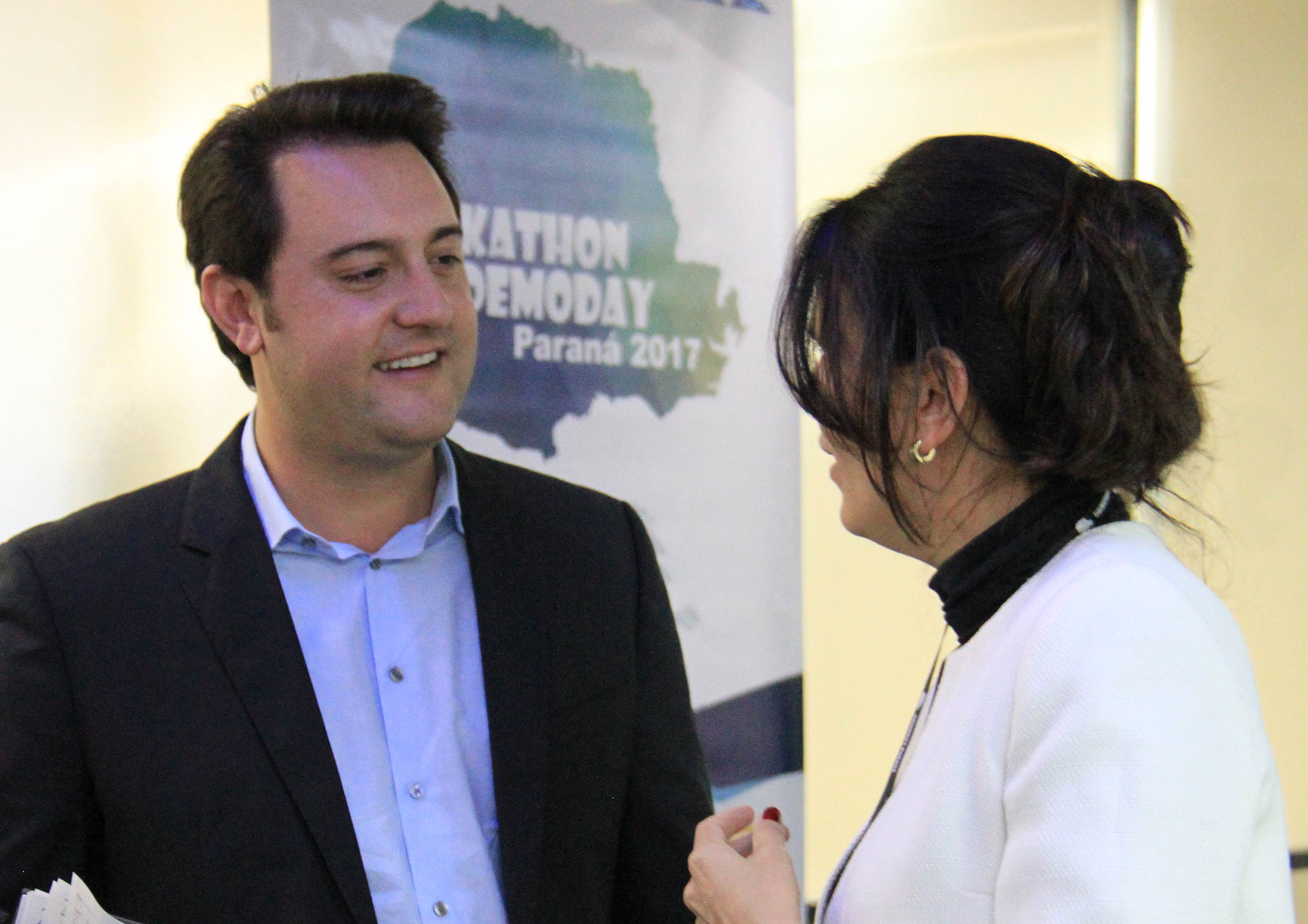 IDEALIZADORES - O deputado estadual Guto Silva, um dos idealizadores do Hackathon Paraná, junto com Ratinho Junior, prestigiou o evento. “Precisamos de novas ferramentas para aproximar o cidadão da máquina pública. Com este evento, buscamos soluções pontuais para melhorar os serviços públicos e a vida das pessoas. Não podemos, neste momento de crise política do País, nos acomodar. É preciso inovar”, enfatizou.