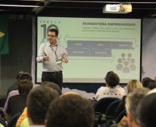 Um dos palestrantes da manhã desta sexta-feira, o teólogo e engenheiro eletrônico, formado pela PUC de São Paulo, com MBA pela Fundação Getúlio Vargas, e que atua na área de tecnologia há mais de 20 anos, CEO da empresa Ravel Tecnologia, mentor e “investidor anjo” em mais de 16 startups, presidente do Instituto de Tecnologia de São Caetano do Sul (ITESCS), Benício José Filho, parabenizou ao secretário Ratinho Junior e a todos os presentes pela iniciativa. “Isto aqui é inovador. O Paraná está de parabéns, pois faz uma startup do Governo do Estado. E, assim, pode ‘pivotar’ (mudar os rumos do que se faz)”, assegurou.