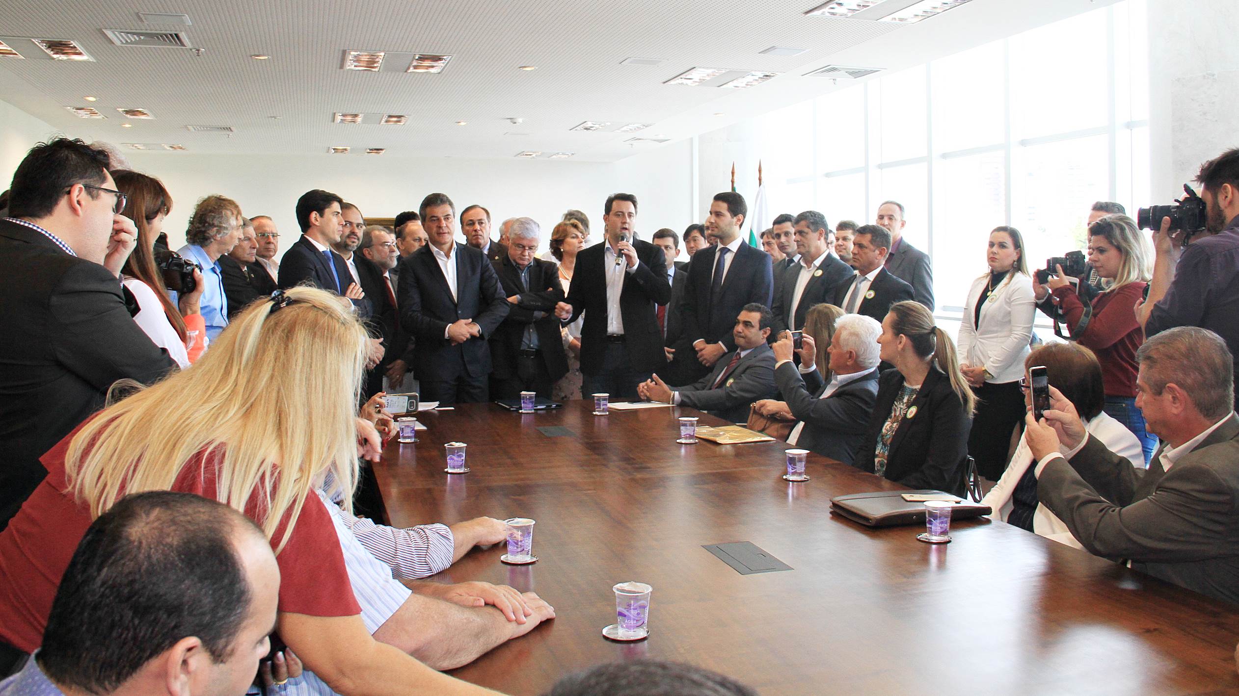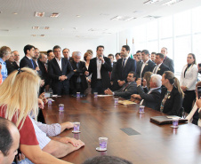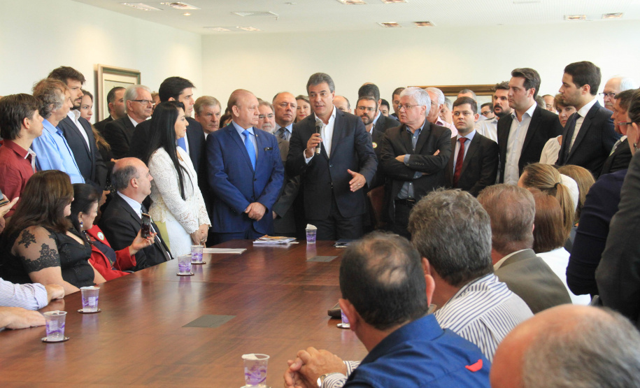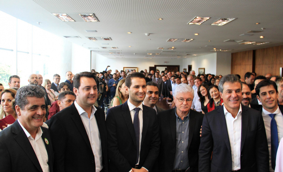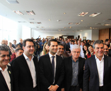 PRESENÇAS - Participaram da solenidade também os secretários estaduais da Justiça, Trabalho e Direitos Humanos, Artagão Junior; e do Meio Ambiente e Recursos Hídricos, Antonio Bonetti; o presidente da Fomento Paraná, Juraci Barbosa; o presidente da Assembleia Legislativa, deputado Ademar Traiano; e os deputados estaduais André Bueno, Cristina Silvestri, Doutor Batista, Tião Medeiros, Stephanes Junior, Paulo Litro, Nelson Justus, Alexandre Curi, Bernardo Carli, José Carlos Schiavinato, Élio Rush, Jonas Guimarães, Tiago Amaral, Pedro Lupion, Mara Lima, Hussein Bakri, Cobra Repórter, Maria Victória Barros e Márcio Nunes.