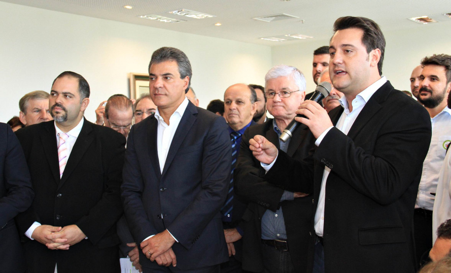 PROGRAMAS INÉDITOS - O primeiro a discursar foi o secretário da SEDU, Ratinho Junior. Ele citou os números que colocam o Paraná em situação invejável de investimentos, “graças a rapidez e eficiência do governo municipalista de Beto Richa”. Ele, ainda, falou sobre os programas inéditos em administração pública no País.