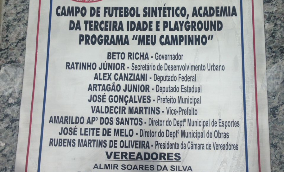 O MEU CAMPINHO – Com recursos a fundo perdido no valor de quase R$ 323 mil, no lote 226, em frente à Rua Andirá, foi construído um conjunto de infraestrutura de lazer para as pessoas de todas as idades: um campo de futebol com grama sintética, uma Academia para a Terceira Idade, um parque com equipamentos de brinquedos para as crianças, instalações elétricas e hidros sanitárias, placas de comunicação e urbanismo, além de alambrados cercando o local.
