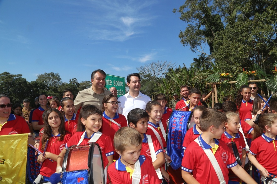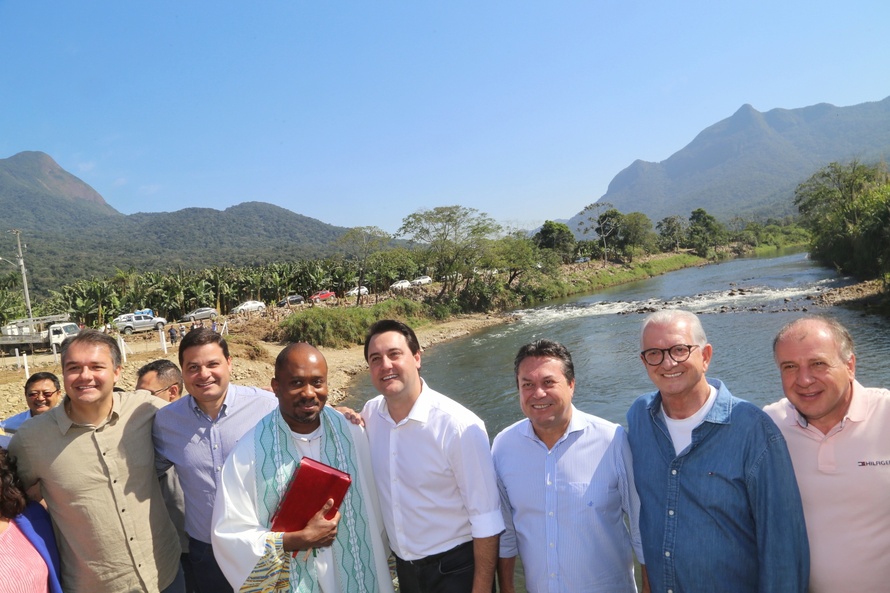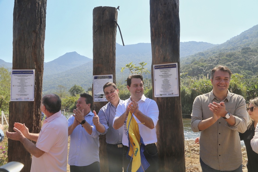 Produtores de bananas e moradores de comunidades do litoral passaram a ter mais segurança e rapidez para atravessar o Rio Cubatão, em Guaratuba. A nova ponte foi inaugurada neste fim de semana pelo governador Carlos Massa Ratinho Junior, com os secretários de Estado do Desenvolvimento Urbano e de Obras Públicas, João Carlos Ortega, e da Infraestrutura e Logística, Sandro Alex, além de pessoas que se beneficiarão com a obra. A ponte liga a comunidade do Cubatão com a Limeira, que faz divisa com o Município de Morretes.
