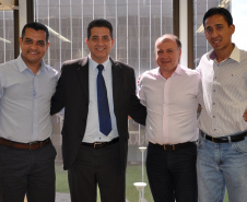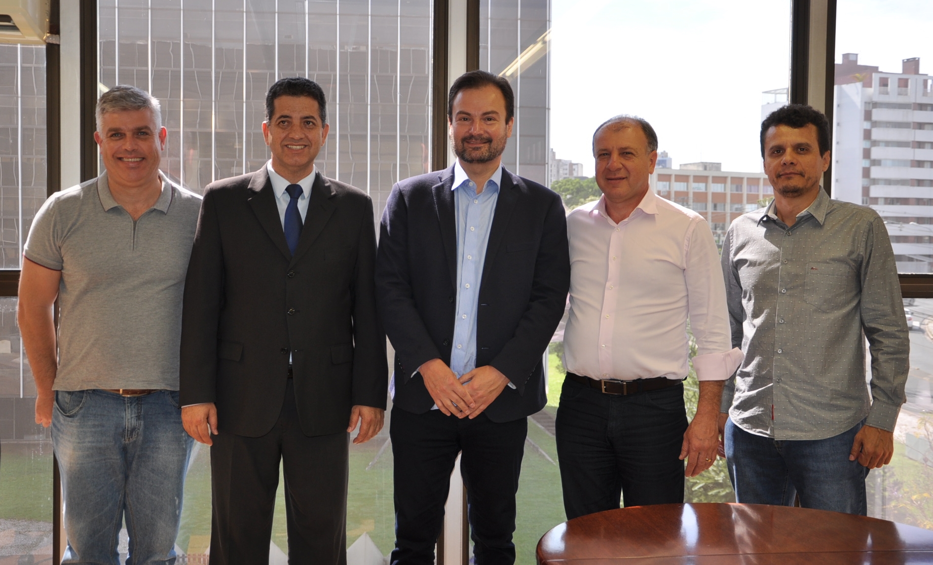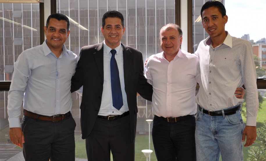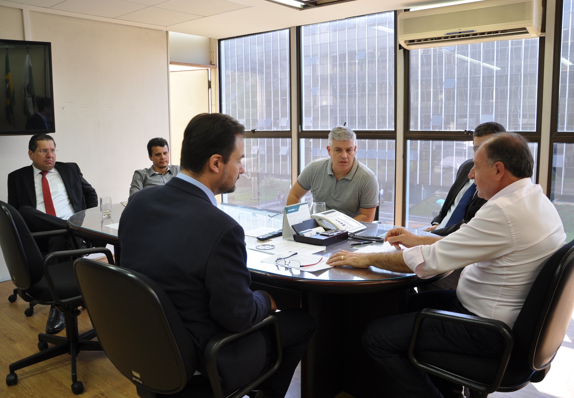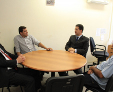 Nesta terça-feira, 18, o diretor geral da SEDU, João Carlos Ortega, e o coordenador operacional do Paranacidade, Ricardo Muller, receberam o prefeito reeleito de Rolândia, Luiz Francisconi Neto, acompanhado do seu secretário de Governo, Antônio de Souza, e do deputado estadual Devanil Reginaldo da Silva, o Cobra Repórter. O prefeito, apesar de reeleito e de já conhecer o trabalho, pediu informações sobre programas novos, como “Meu Campinho” e outros.