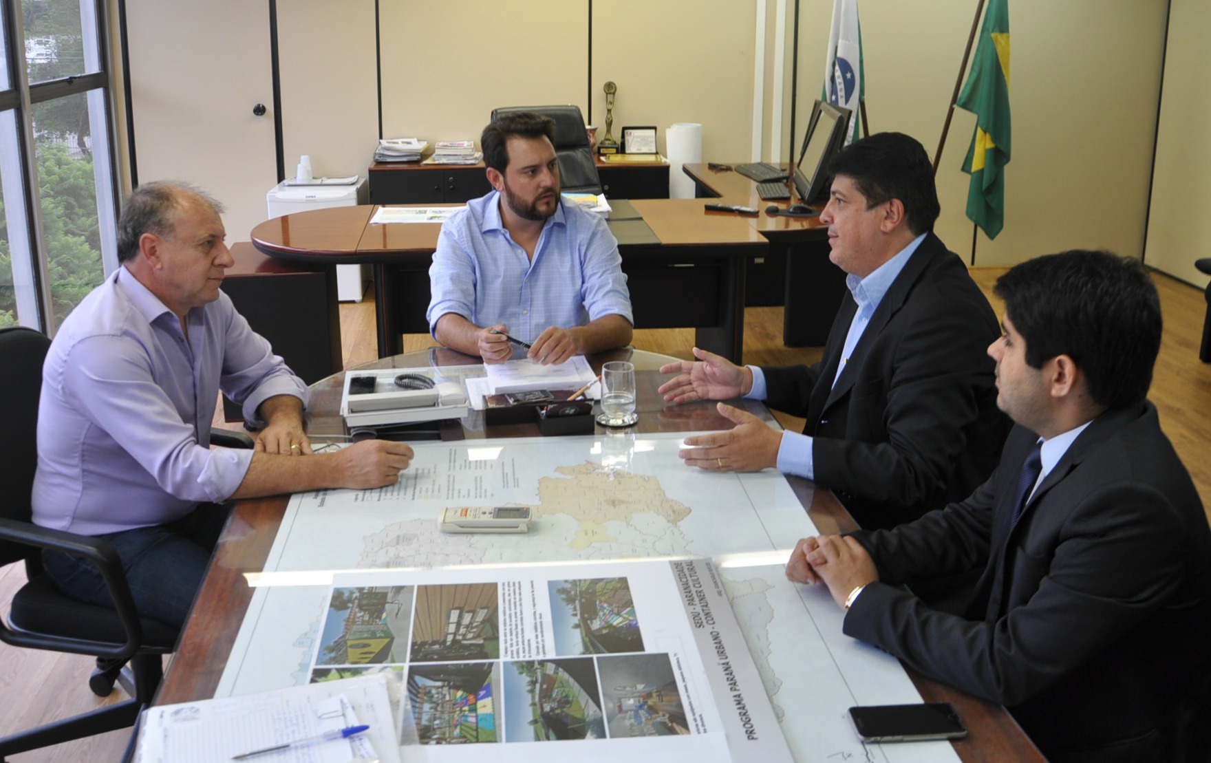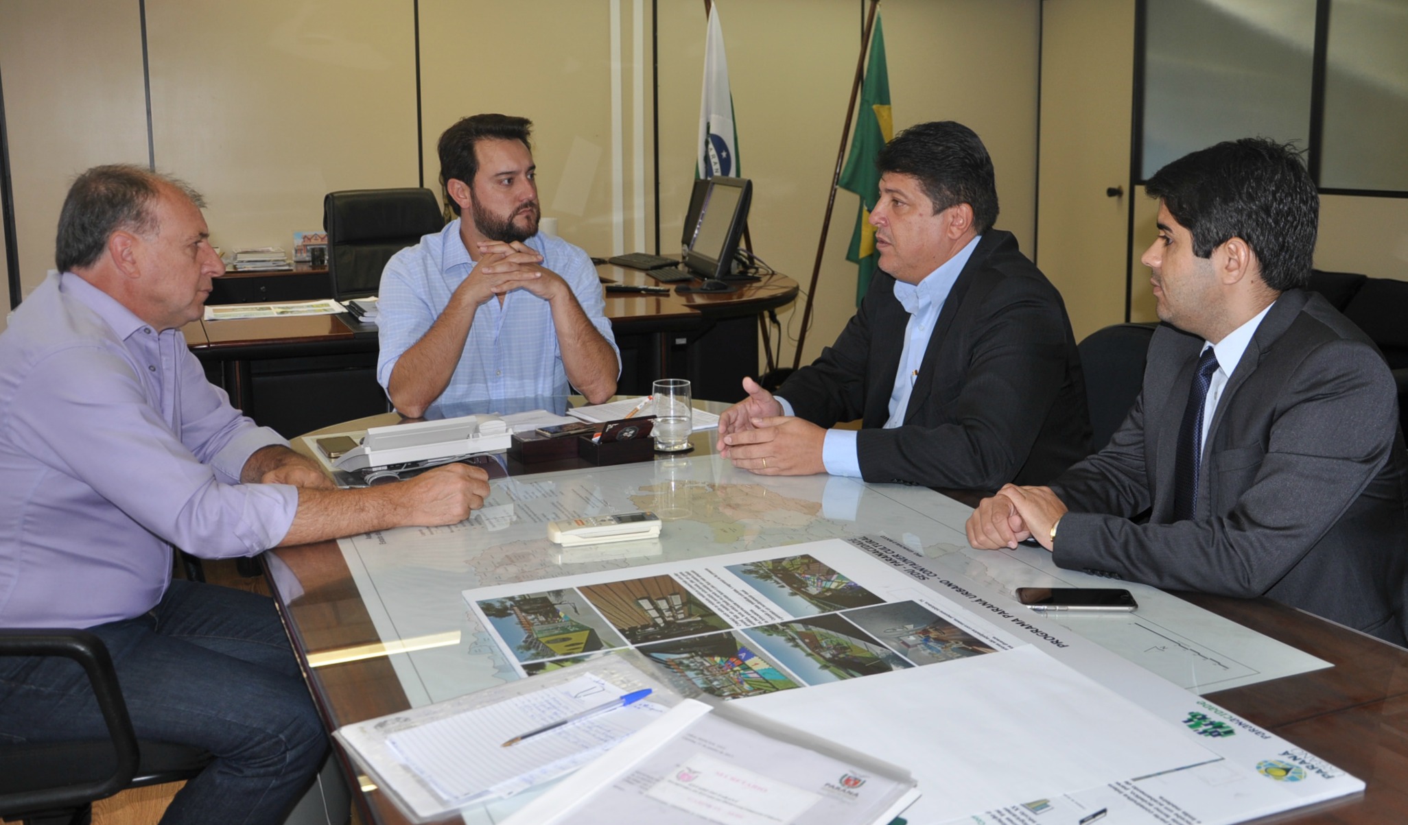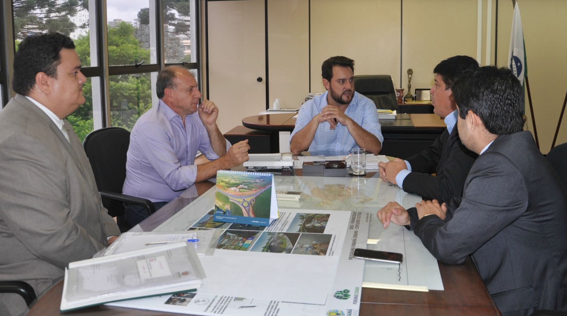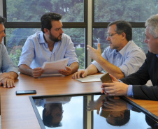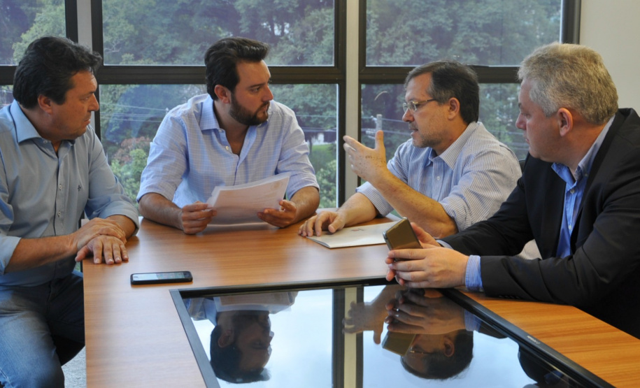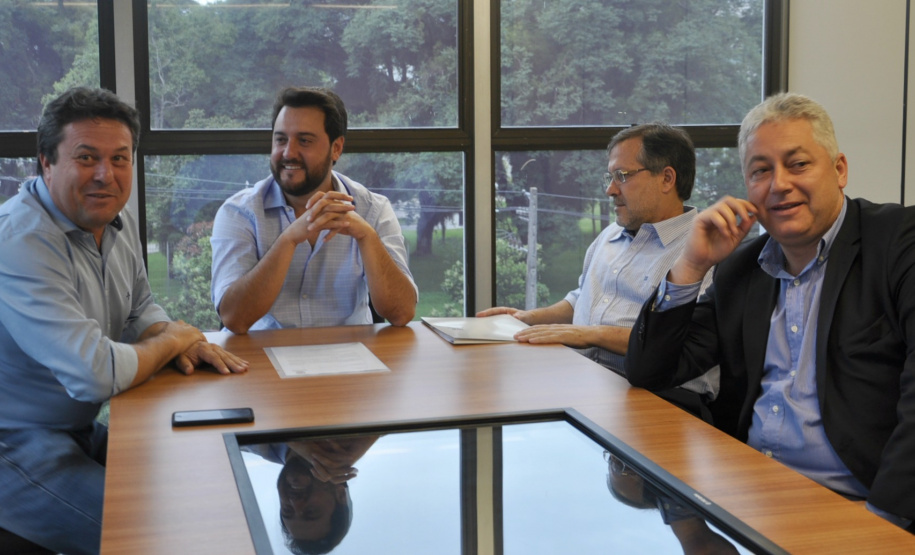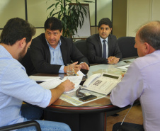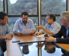 CAMPO MOURÃO - Ainda passaram pela SEDU, nesta terça-feira, em conversa com o secretário Ratinho Junior e Ricardo Muller, o prefeito de Campo Mourão, Tauillo Tezelli, acompanhado do deputado estadual Márcio Nunes e do secretário de Esporte e Turismo, Douglas Fabrício.